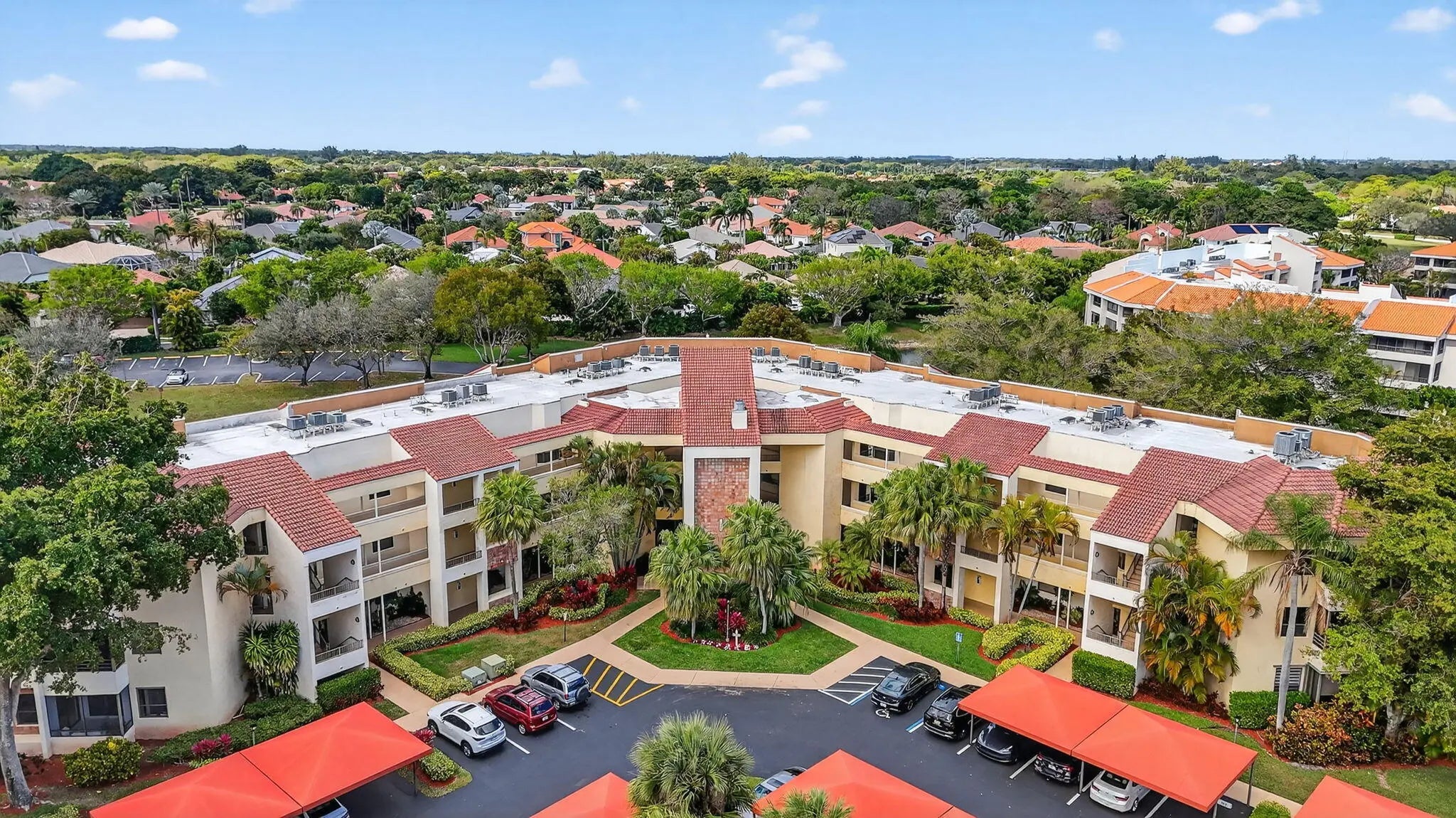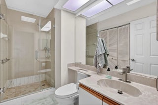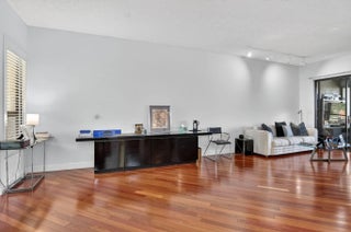 Spacious 3/3 corner condo on the 3rd floor featuring a light and open floor plan with serene water and garden views. Beautiful wood flooring enhances the main living areas, while vinyl flooring has been installed in the bedrooms. Both patios are enclosed, creating additional versatile living space ideal for a den or sitting area. Impact glass on all windows (excluding patios) and no popcorn ceilings add to the home's modern appeal. Primary suite offers a large custom-built closet and bath with dual sinks, separate shower, and soaking tub. 2 other bathrooms feature updated glass enclosures and newer toilets. The kitchen is open to the living room and boasts quartz countertops, white cabinetry, added storage, and a spacious breakfast area. Upgraded front-load washer and dryer.