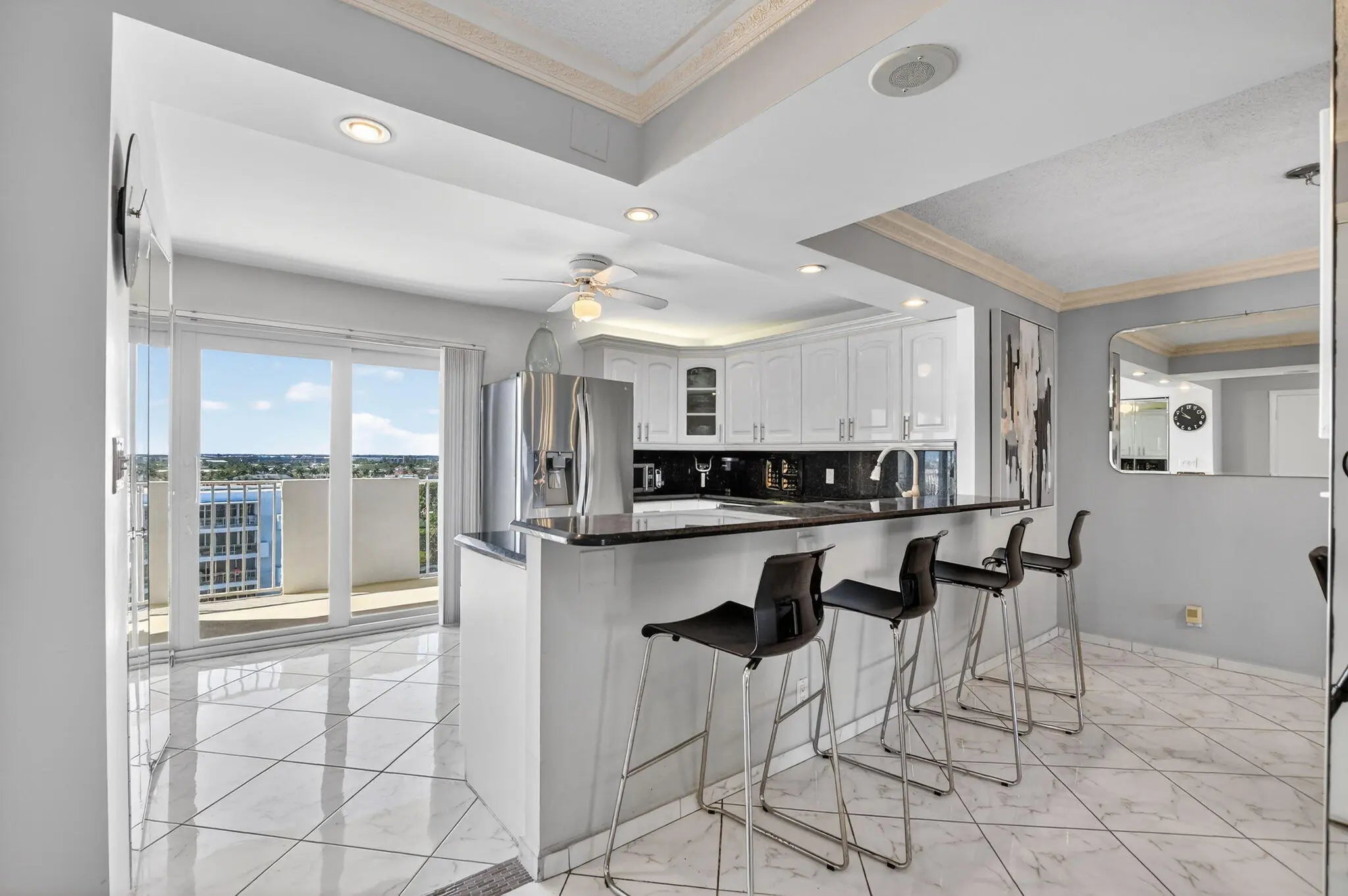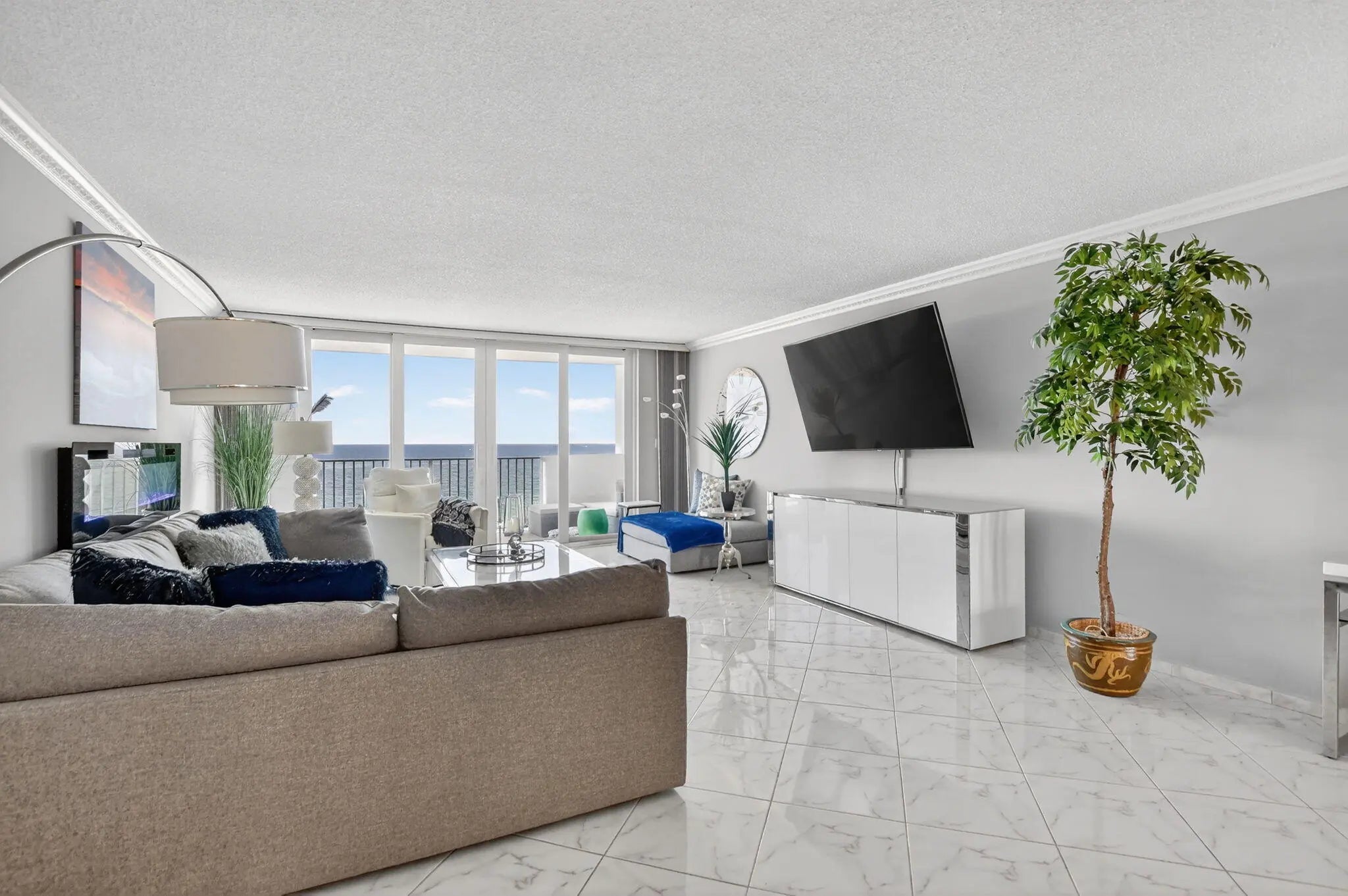Experience elevated coastal living in this beautifully appointed 2-bedroom, 2-bathroom fully furnished residence ideally situated directly on the beach. Offering breathtaking ocean views paired with dynamic city skyline vistas, this home delivers the perfect balance of serenity and sophistication.The thoughtfully designed floor plan features an open-concept living and dining area filled with natural light, seamlessly extending to a private balcony where you can enjoy stunning sunrises over the water and sparkling city lights in the evening. The spacious primary suite offers tranquil ocean views, a generous closet, and a we
