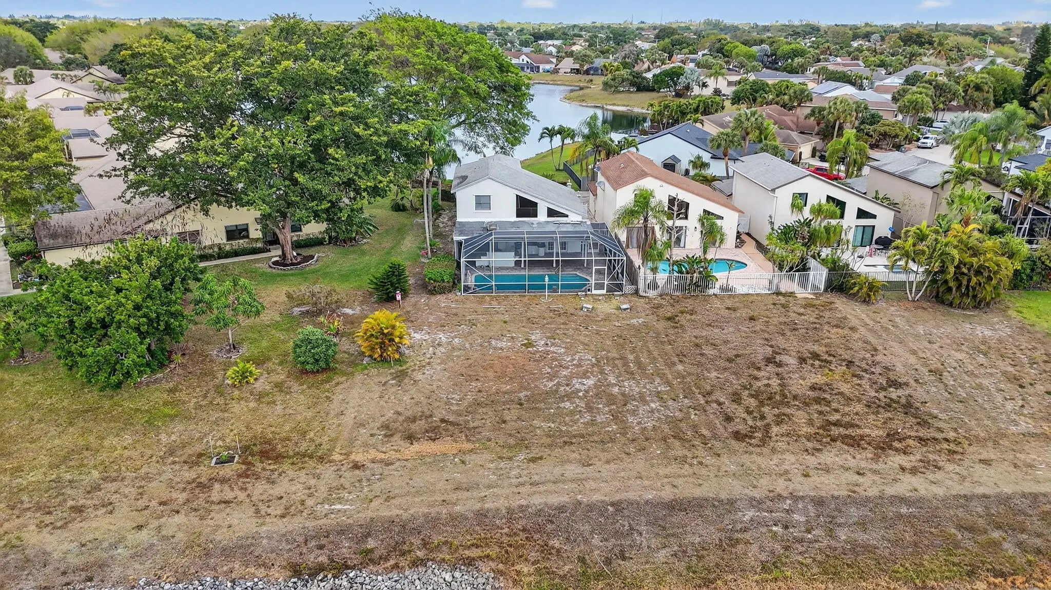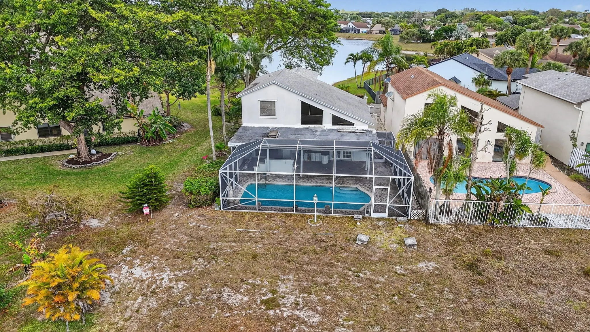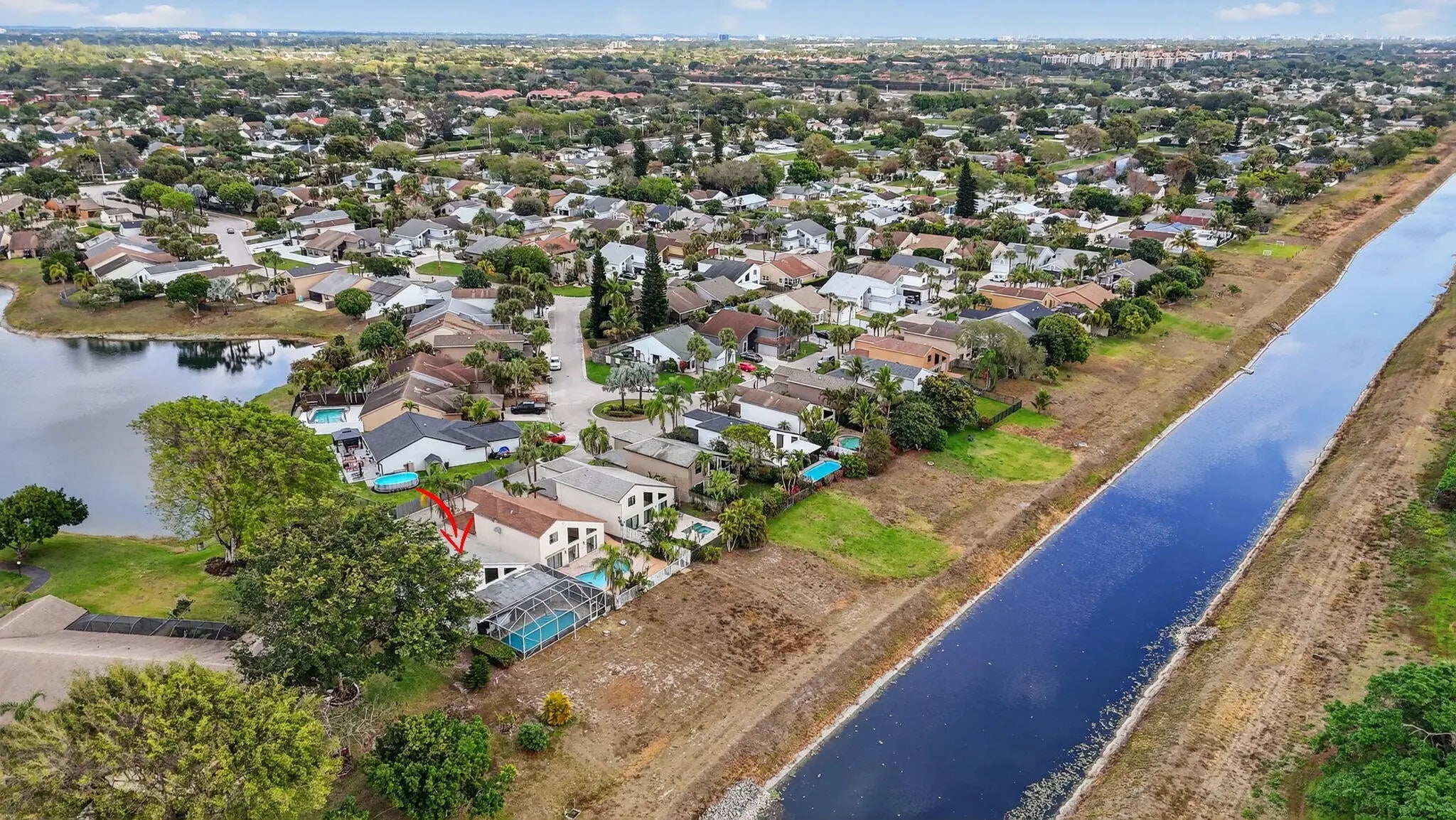 Look no further- this is the only true corner home for sale in the highly sought after Boca Trace community. On an oversized lot, this spacious two story home boasts water views directly behind and also in front of the property. Featuring 4 bedrooms: with a primary on the first floor and 2 & 1 half bathrooms. This almost 2000 SF home features expansive ceilings making the space feel open and bright. While overlooking the canal there is a perfect entertainment space with a pool and grilling area all within your screened in patio. Low HOA fees, no membership fees, and a family- and pet-friendly community. Top-rated schools and centrally located- great shopping, dining, and access to major highways.