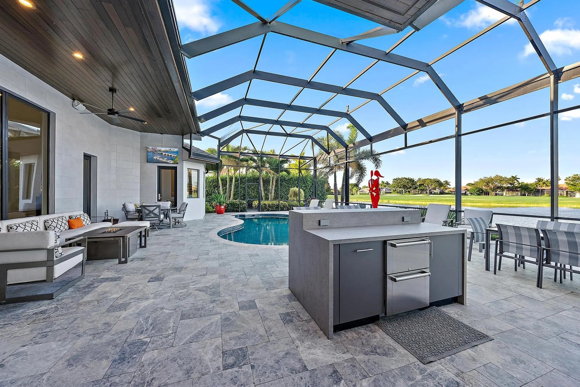 Built-in Grill, Custom Lighting, Screened Patio, Summer Kitchen