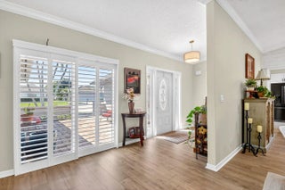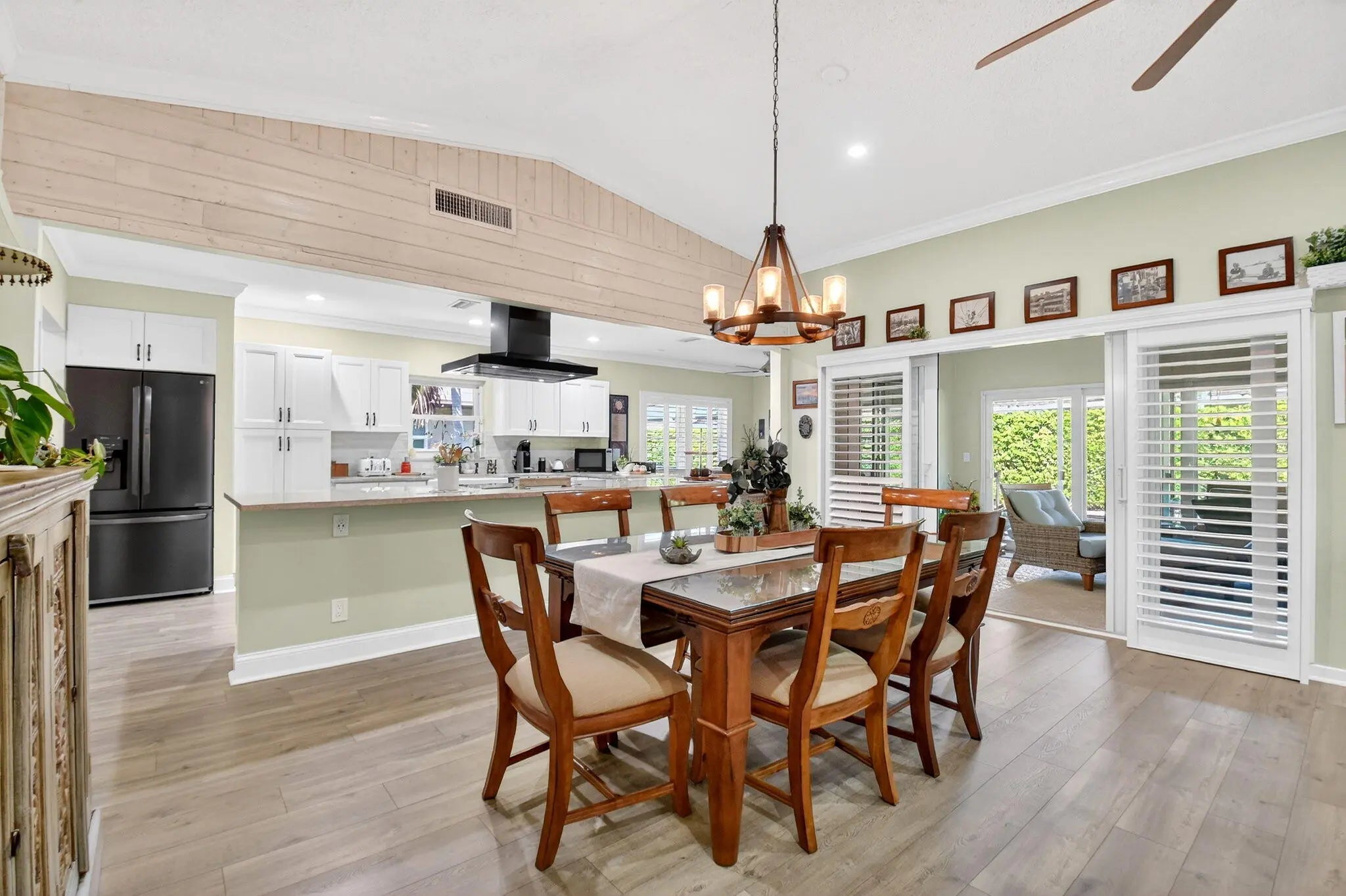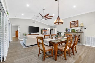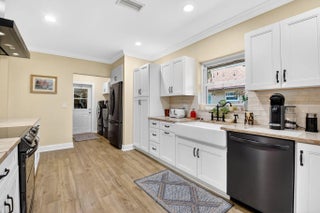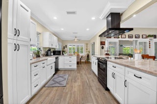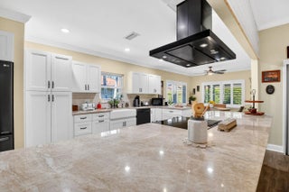 Welcome to 10265 Greentrail Drive N, a meticulously updated residence nestled in the serene community of Pine Tree Village in Boynton Beach, Florida. This stunning property offers 2,304 square feet of thoughtfully designed living space, featuring three spacious bedrooms and two modern bathrooms. Upon entering, you are greeted by an open-concept layout that seamlessly integrates the living, dining, and kitchen areas, creating an inviting atmosphere for both relaxation and entertainment. The kitchen is a chef's dream, boasting an island with stone countertops, dual convection ovens, and Kohler porcelain cast iron farmhouse sink with a garbage disposal. White kitchen cabinets with a pantry provide ample storage, while recessed lighting enhances the space's elegance.