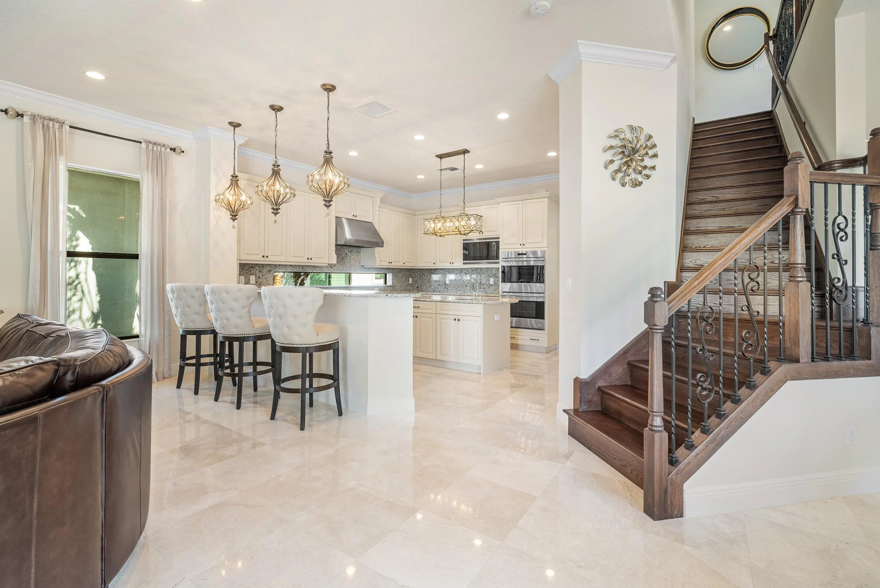 Unfurnished OR Fully furnished 5-bedroom + Office + Loft, 5-bathroom rental in the gated Royal Palm Polo community, centrally located in Boca Raton. This Ternbridge II model opens with a grand two-story foyer & features formal living & dining rooms with coffered ceilings, flowing into a spacious great room with open lake views. The kitchen is equipped with gas Wolf appliances, quality finishes, a casual dining area & rear staircase access, well-suited for both everyday living & entertaining. Upstairs, the primary suite includes dual walk-in closets & a large spa-style bath. Outside, the private pool overlooks the lake & is just a short walk to the clubhouse, fitness center, tennis courts & community amenities. Short or Long Term Lease Available.