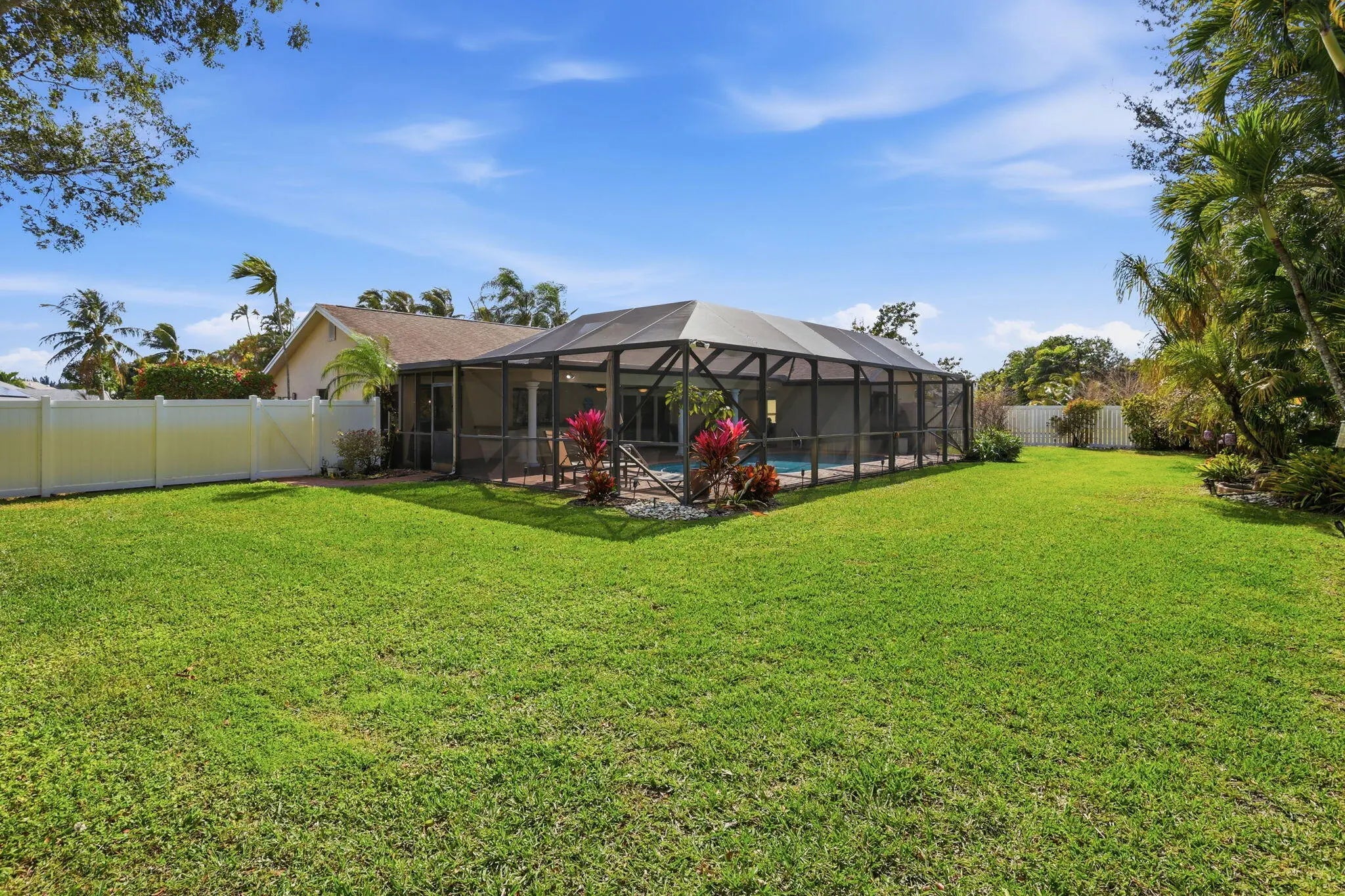 Gorgeous remodeled 4BR/2BA pool home on nearly 1/2 acre with LOW HOA in Bentbrook of Boca Chase! Spacious split floor plan with 2 living areas and formal dining surrounding a custom chef's kitchen with granite counters, solid wood cabinets, stainless appliances & breakfast area. Primary suite features patio sliders, oversized walk-in & marble rain shower. Upgraded cabana bath. Private fenced backyard with covered patio, outdoor bar & heated pool--perfect for entertaining, vaulted ceilings & more. A-rated schools. Minutes to dining & shopping!