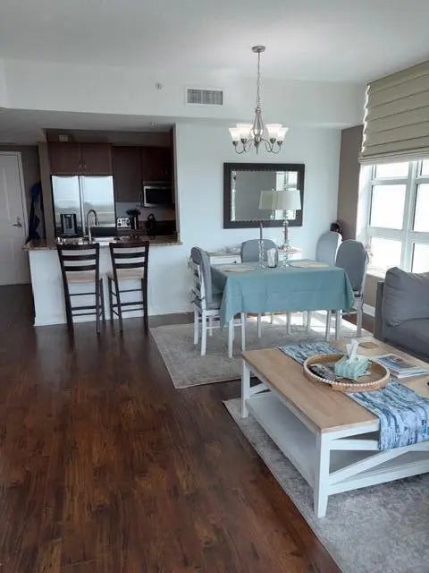 A unique one bedroom living experience in a five star resort style building with all the amenities. 2 sparkling pools, fitness center, sauna, steam room, putting green, activity room, business center, valet services, 24 hour front desk, security, doorman. The condo is fully furnished, includes full kitchen, living & dining area, one bedroom, full bath w/ tub and separate shower. The living room and dining area is spacious. Corner large wrap balcony with beautiful sunsets. The beach is 3/4 miles from the condo. You may walk, take the shuttle or self park available. You are steps away from many restaurants, The Boynton Harbor Marina with all water activities. Enjoy !