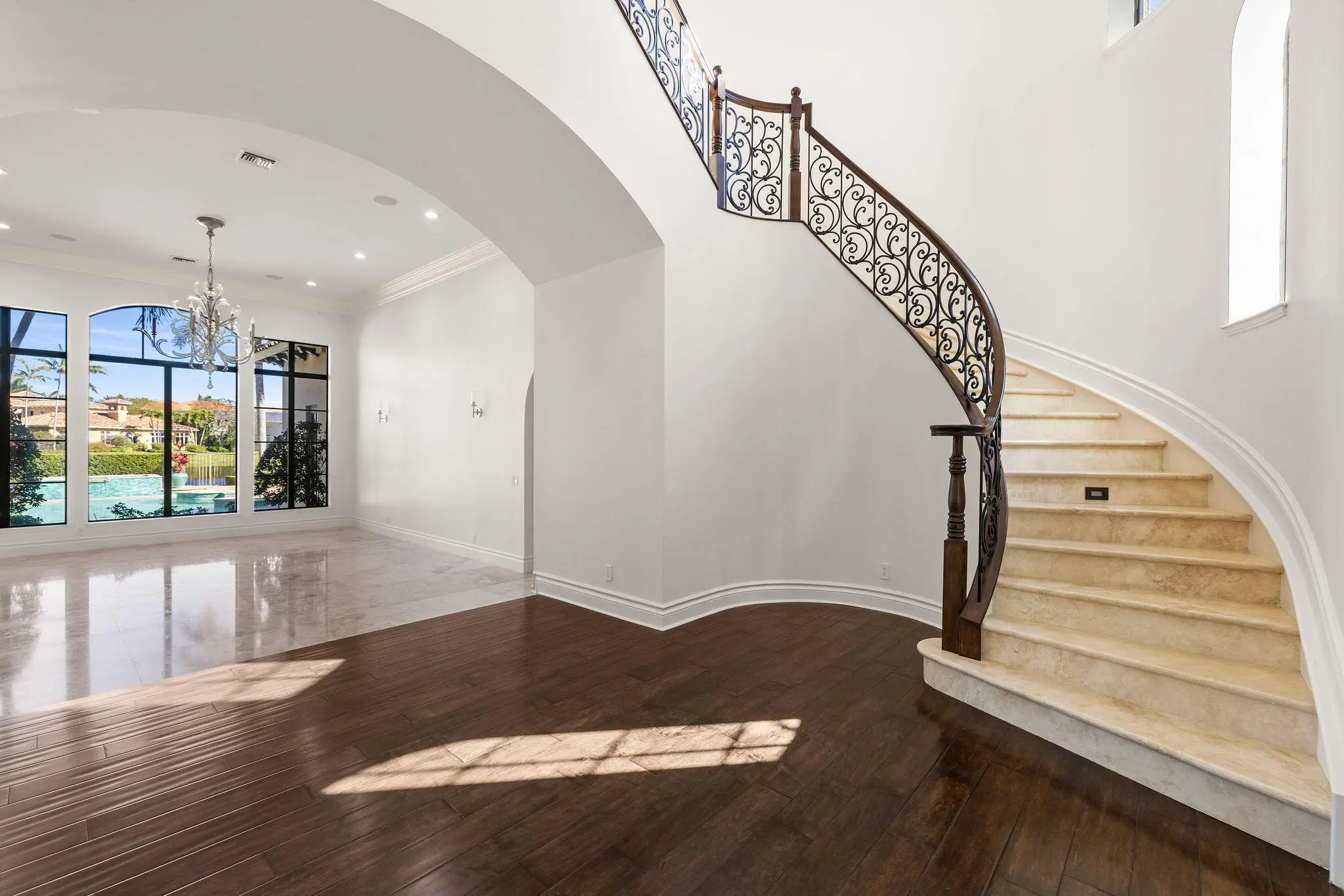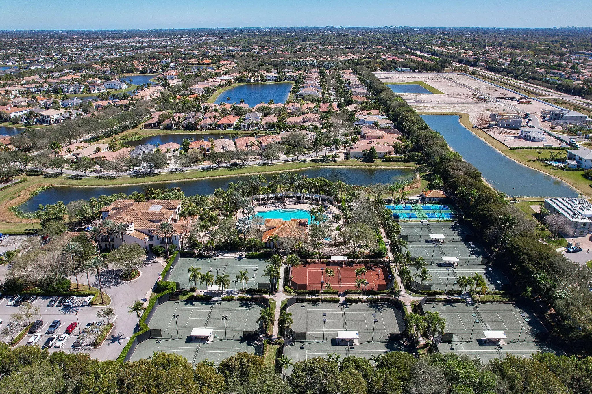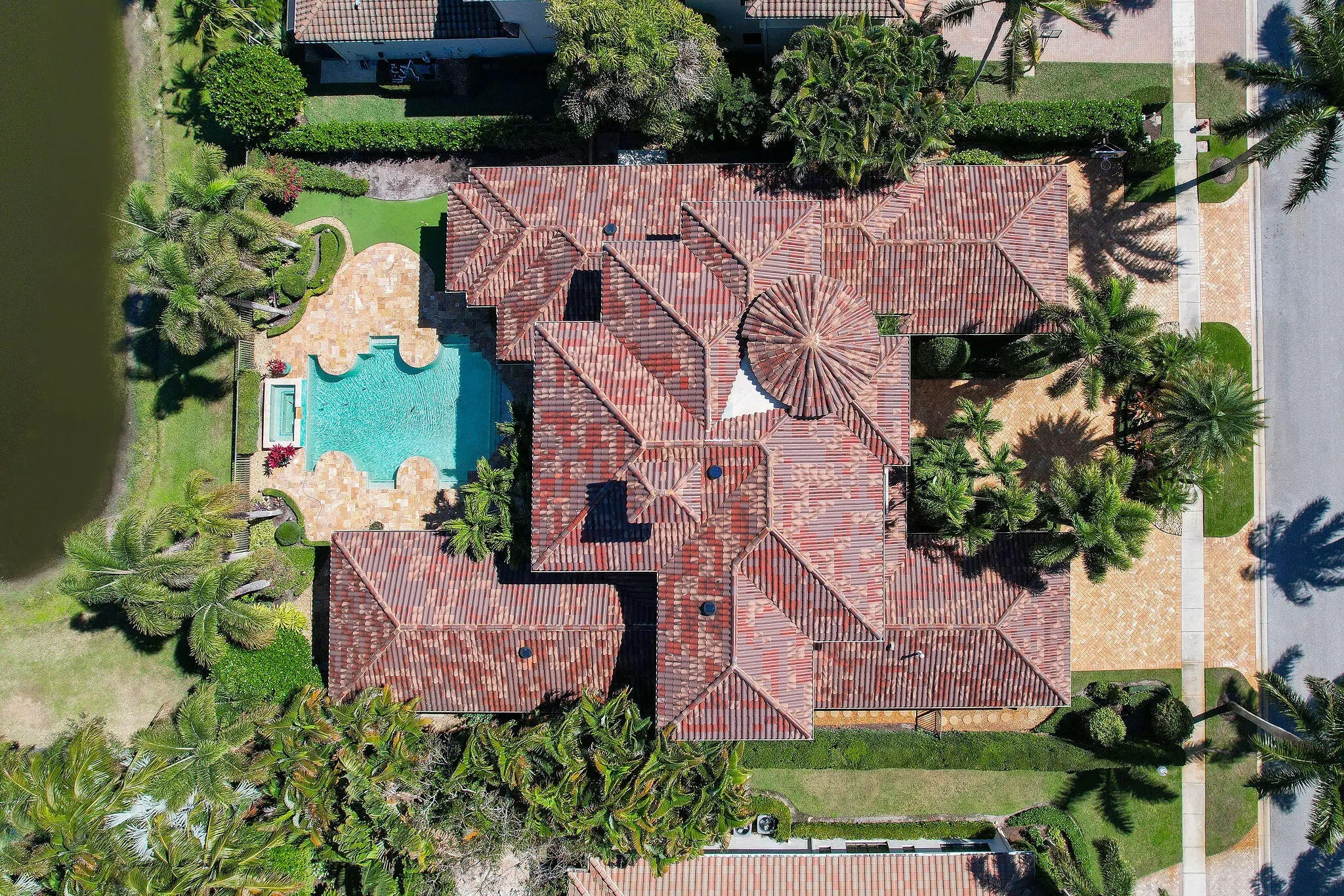 Experience refined elegance in this extraordinary custom estate where timeless design meets exceptional craftsmanship. A grand double-height foyer and sweeping statement staircase create an unforgettable first impression, opening to a radiant living space filled with natural light and captivating views of the shimmering pool and tranquil lake beyond.Designed for both everyday living and elevated entertaining, the gourmet chef's kitchen is a masterpiece, appointed with premium Sub-Zero, Wolf, Thermador, and Miele appliances, complemented by a generous walk-in pantry and seamless flow into the family room, intimate dining area, and sophisticated club room. Throughout the residence, exquisite custom woodwork and designer finishes showcase meticulous attention to detail.