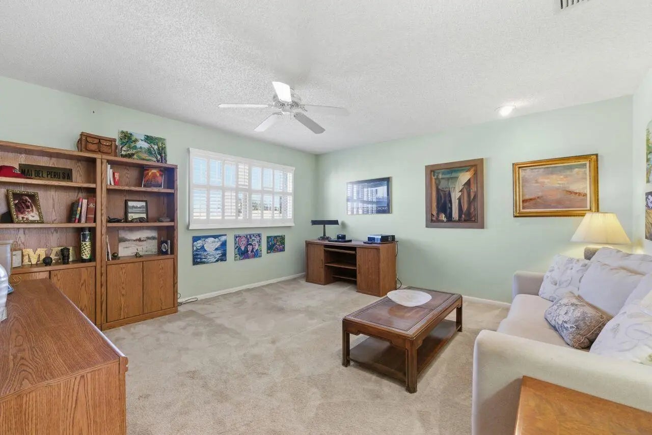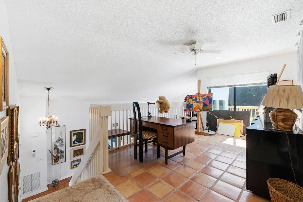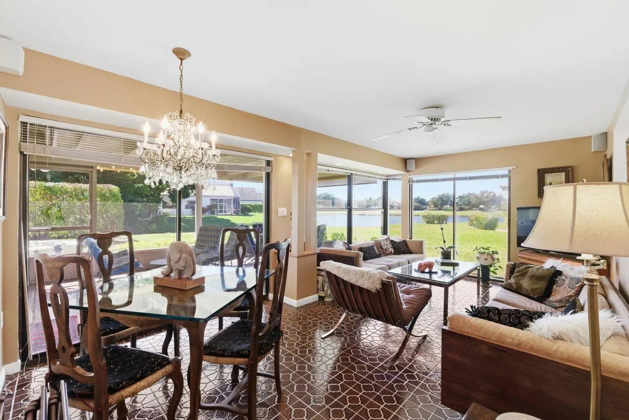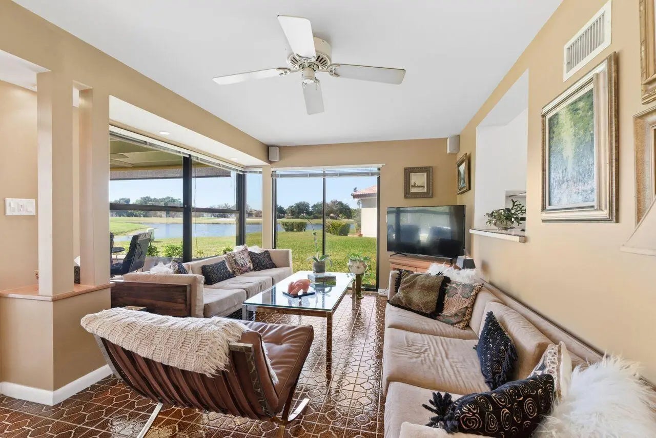 Are you a one-of-a-kind buyer? Are you looking for a very private, comfortable, sun-drenched, very large, open layout home of over 2,600' (incl loft) and 2 bedrooms and full bath on the 2nd floor? This beautiful home with views of a lake exudes warmth and artistry. It sits on a large lot at the end of a cul-de-sac within the Estate Residences of Indian Spring, a gated community with 2 golf courses. On the main level, there is a Primary Bedroom with sliders to the screened-in porch, a step-down shower with a magnificent stained-glass window in the en-suite bathroom, and large closets. Also on this level is a sun-lit comfy family room, a living room with a cathedral ceiling and high windows, a huge dining space with a built-in bar, a large eat-in kitchen with sliders