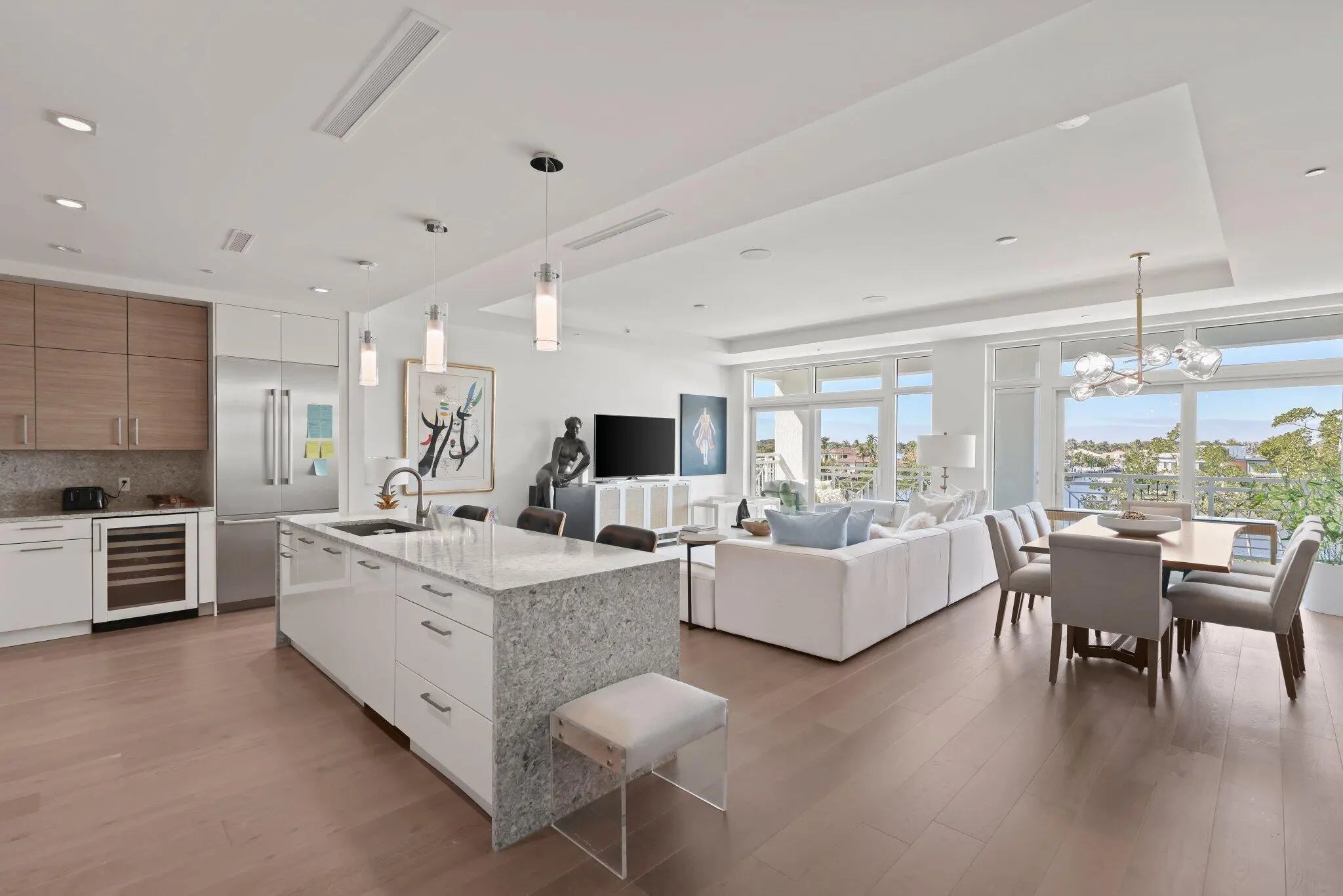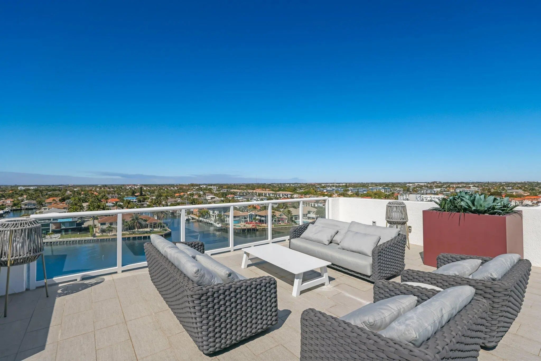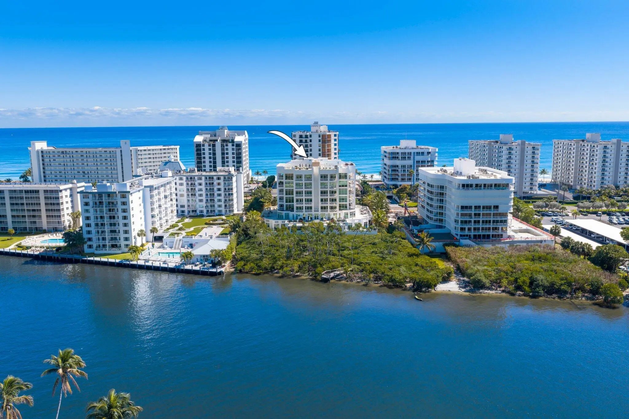 Luxury Intracoastal living in the newest boutique condominium building in Highland Beach, featuring just 19 private residences and offering ocean access. This elegant 3-bedroom, 3-bath residence offers approximately 1,800 square feet of thoughtfully designed living space with 10-foot ceilings and floor-to-ceiling glass that seamlessly connects the interior to a spacious terrace overlooking the Intracoastal Waterway, providing expansive water views and exceptional indoor-outdoor living.A private elevator opens directly into the residence, creating an exclusive and refined arrival experience. High-end designer finishes are featured throughout, making this home ideal for both sophisticated entertaining and relaxed waterfront living