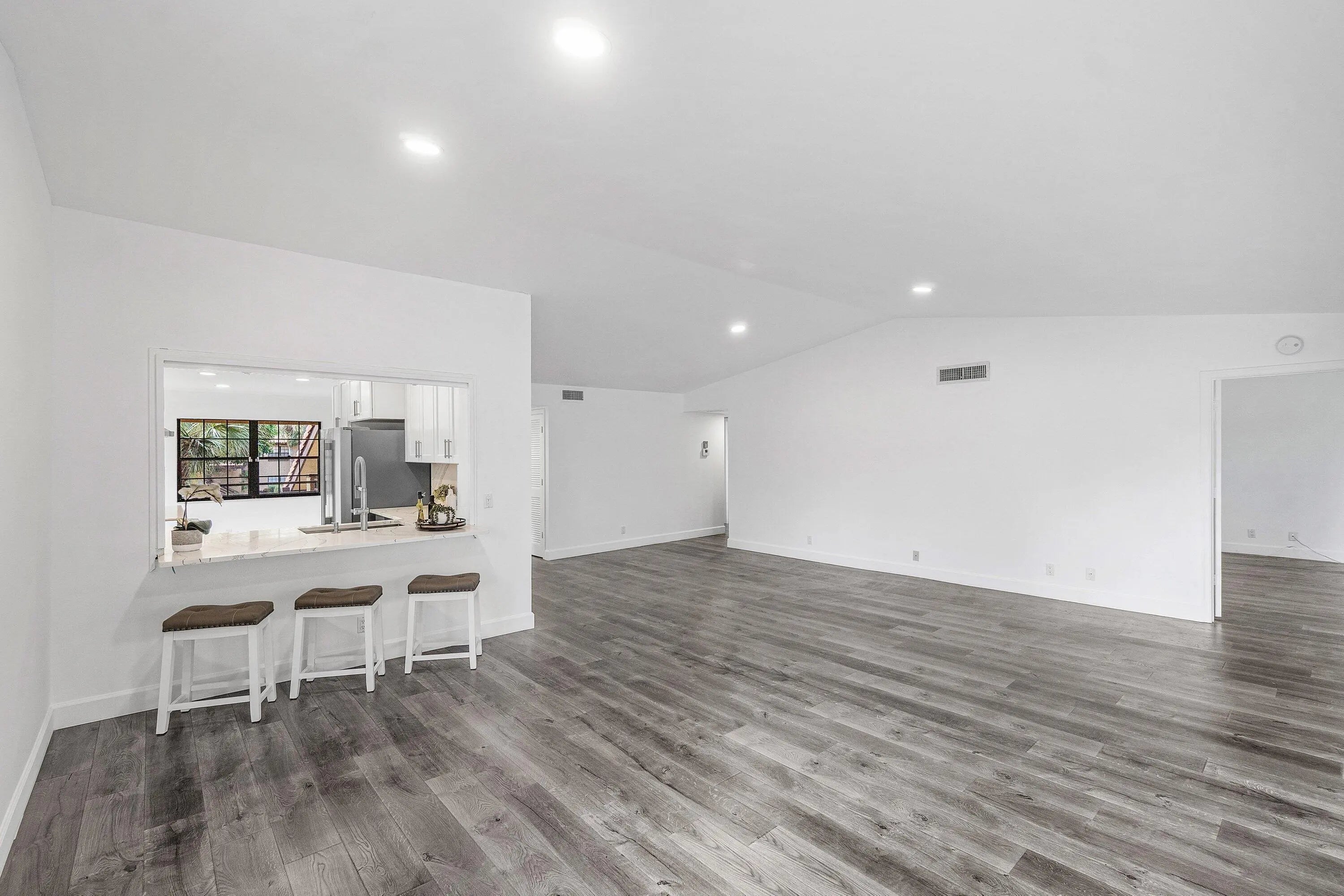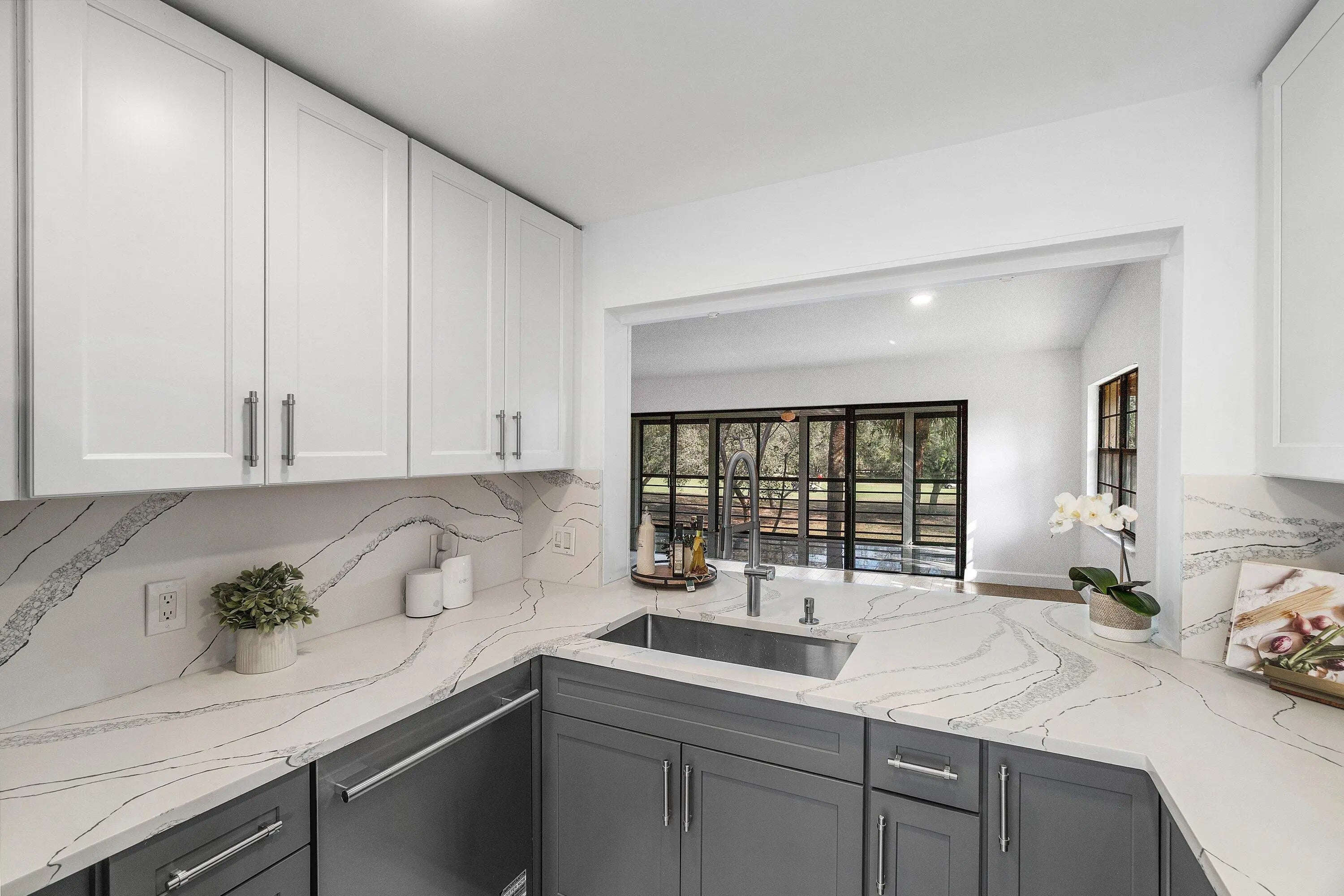 THIS EXTREMELY SPACIOUS (almost 1,700 sq ft) 3 BED/ 2 BATH CORNER UNIT CONDO HAS BEEN COMPLETELY REMODELED & FEATURES HIGH CATHEDRAL CEILINGS! THE ''SHOWSTOPPER'' KITCHEN FEATURES QUARTZ COUNTERTOPS, GREY & WHITE SHAKER CABINETS, TOP OF THE LINE S/S APPLIANCES & HOOD, PLUS ROOM FOR 3 BARSTOOLS. THE PRIMARY BEDROOM HAS CATHEDRAL CEILINGS THAT GIVES A SPACIOUS AIRY FEELING, A MASSIVE WALK IN CLOSET & THE HUGE PRIMARY BATH HAS A ROMAN SOAKING TUB, SEPARATE PORCELAIN SHOWER & DOUBLE SINK VANITY! THE 3-WAY SPLIT FLOOR PLAN OFFERS PRIVACY FOR YOUR GUESTS. RELAX IN THE ENCLOSED FLORIDA ROOM & WATCH THE GOLFERS PLAY IN THE COOL A/C OR OPEN THE WINDOWS TO ALLOW THE COOL SOUTHERN BREEZES TO BLOW THROUGH. INDIAN SPRING IS BEAUTIFULLY LANDSCAPED, GATED & IS WALKING DISTANCE TO HOUSES OF WORSHIP
