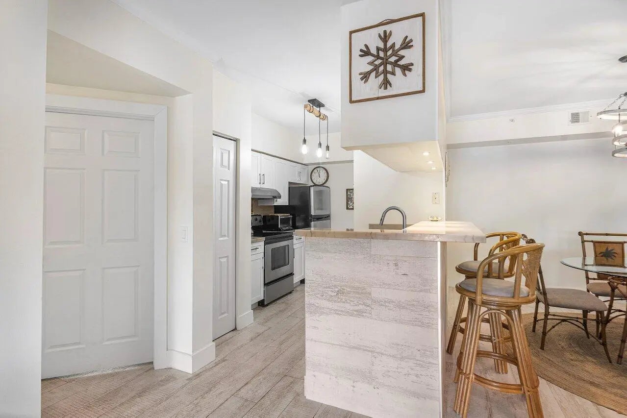 IMMACULATE, FULLY FURNISHED 3-BEDROOM, 2-BATHROOM CONDO WITH PRIVATE GARAGE located in the highly desirable gated community of Tuscany on the Intracoastal in East Boynton Beach.This beautifully updated residence features a modern kitchen with stainless steel appliances and a stunning 11/2'' Sky Gold polished quartzite countertop. Elegant porcelain tile flooring with a wood-look finish runs throughout the unit. Enjoy a lovely private patio with serene treetop and tropical views.Both bathrooms have been tastefully remodeled, and a brand-new washer and dryer are conveniently located inside the unit. The property includes a private garage plus one additional assigned parking space (#102) located directly below the unit. Rent includes: Water, high-speed internet, and basic cable. Tenant