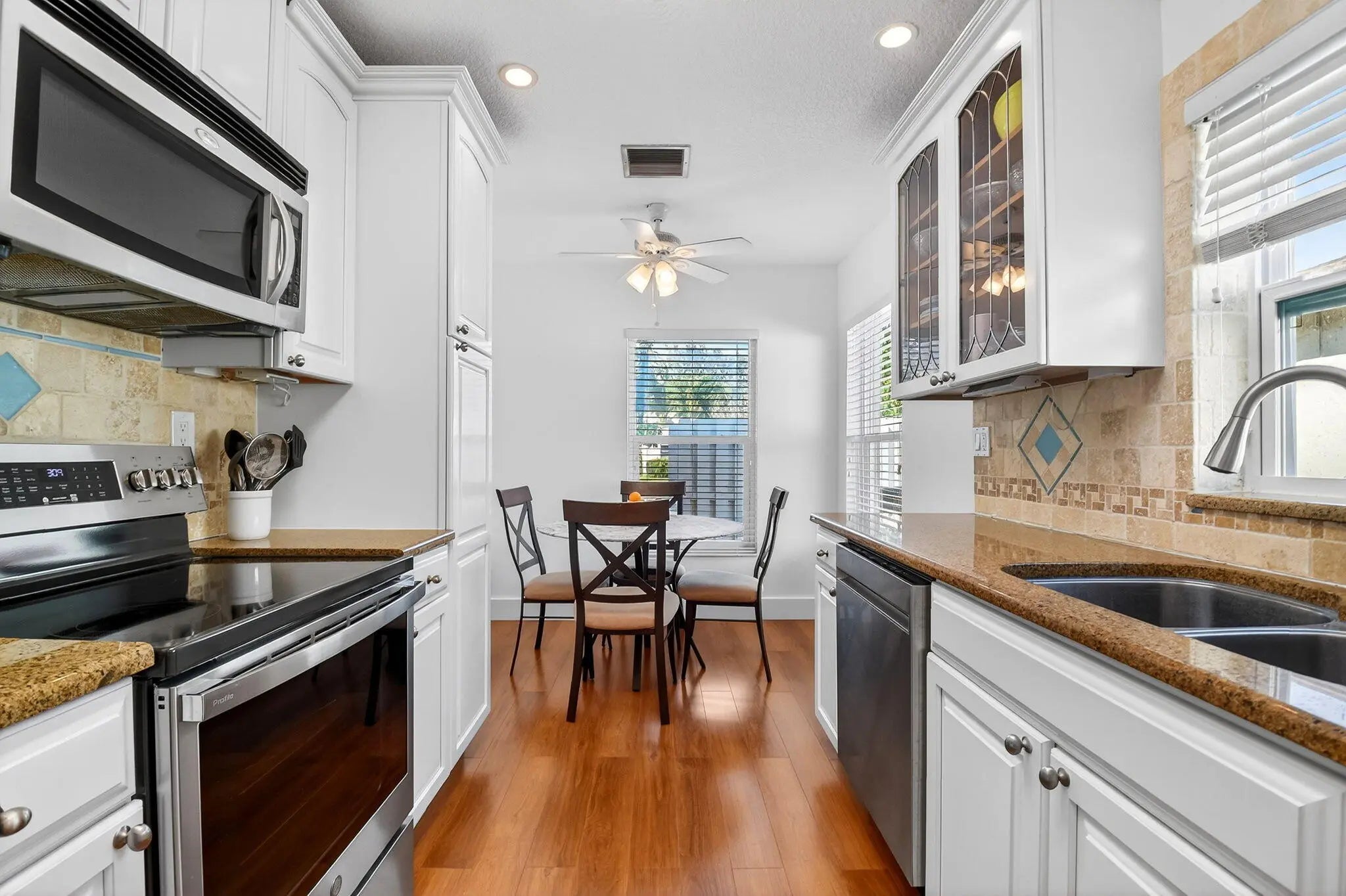 Beautifully updated lakefront home in the desirable community of Mirror Lakes! This move-in ready 2-bedroom, 2-bath residence offers the perfect blend of comfort and Florida charm. The renovated kitchen features white shaker cabinetry, granite countertops, 2024 stainless appliances, and a cozy eat-in area. Both bathrooms are tastefully updated for modern living. The bright Florida room overlooks the lake and is ideal for a home office, sitting area, or peaceful retreat. Hurricane Windows and Newer Air Conditioner add to your peace of mind Enjoy outdoor entertaining on the patio, perfect for BBQs with friends and family. Sip your morning coffee under the mango tree while watching serene lake views and local wildlife. Mirror Lakes is an Friendly adult community with a low Monthly HOA Fee.