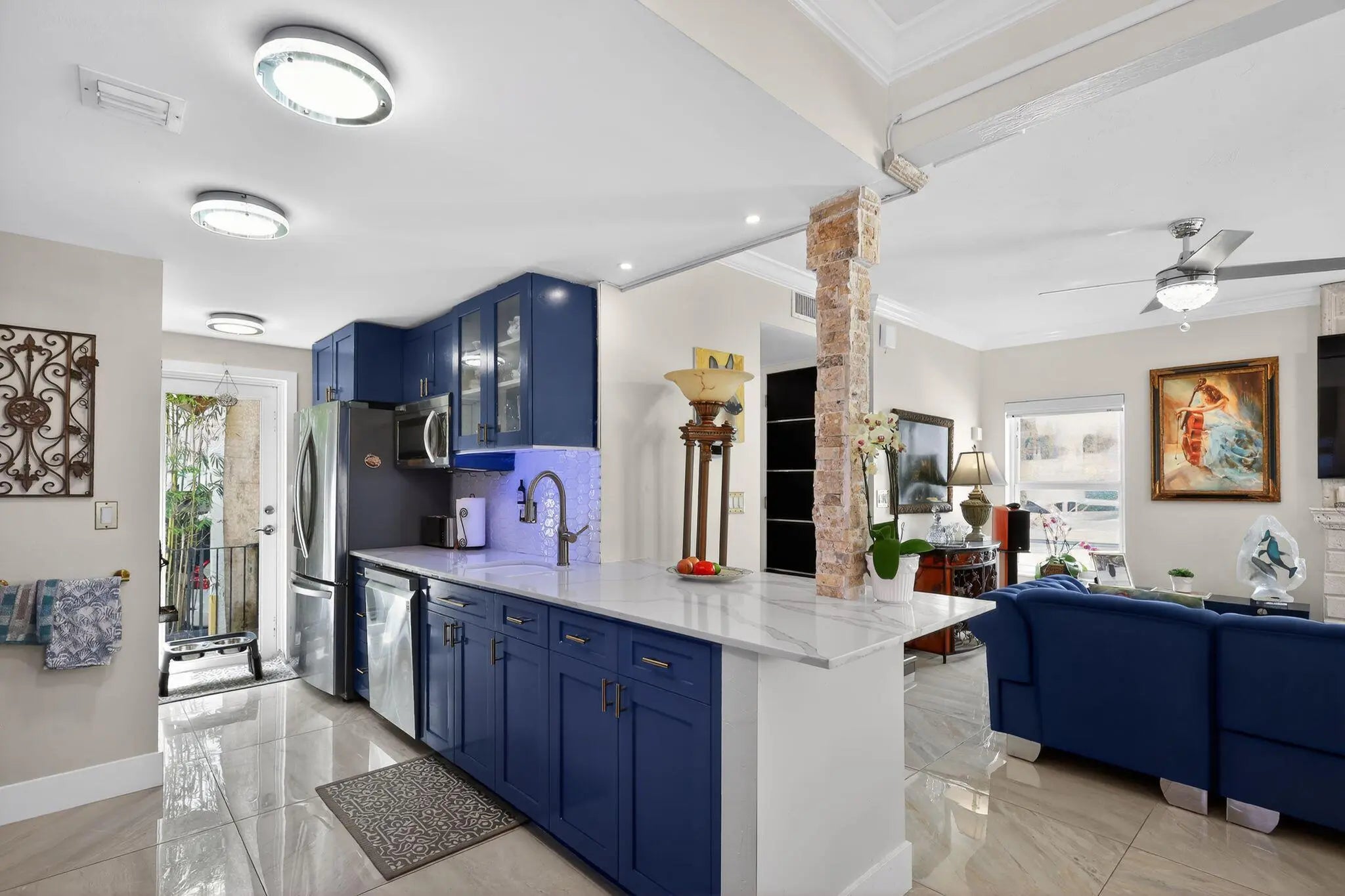 Waterfront Masterpiece in Rio Vista: Completely Renovated with Private Dock up to 38' VesselExperience the pinnacle of Fort Lauderdale living in this exquisitely reimagined 2BR/2BA villa in the boutique ''La Casa Del Rio Vista.'' No expense was spared in this ''down-to-the-studs'' renovation, featuring floated marble floors, elegant crown molding, and custom chandeliers throughout. The chef's kitchen is a showstopper with granite countertops, custom cabinetry, stack-stone accents, and high-end appliances--all highlighted by a sophisticated custom bar featuring a built-in kegerator and tap.