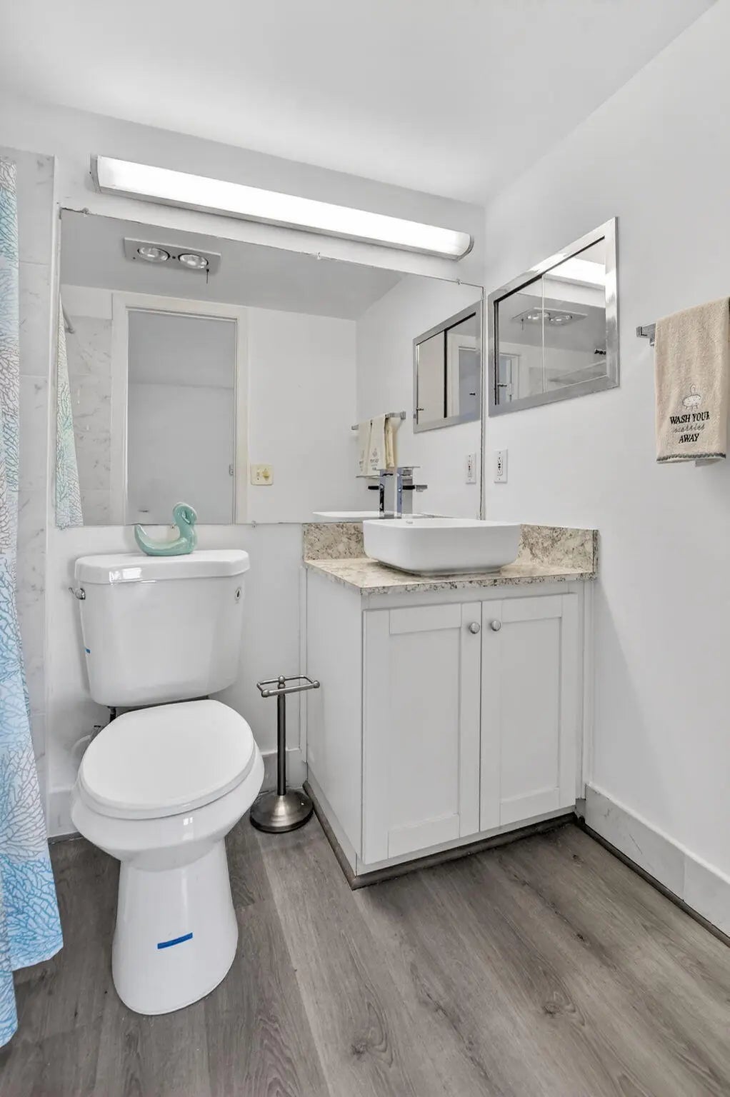 Beautifully renovated 1st-floor 1BR/1.5BA condo with panoramic lake views in Century Village. Enclosed patio with central A/C. Upgrades include renovated kitchen with quartz countertops & new cabinetry, updated baths, new water heater, updated electrical panel, and wood-look flooring throughout. Building has reserves & newer roof. Gated 55+ community with 24-hr security, heated pools (indoor & outdoor), clubhouse, fitness center, tennis/pickleball, shuttle service & more. Prime location near Century Village Clubhouse, places of worship, shopping, dining & highways. Just minutes to Deerfield Beach!