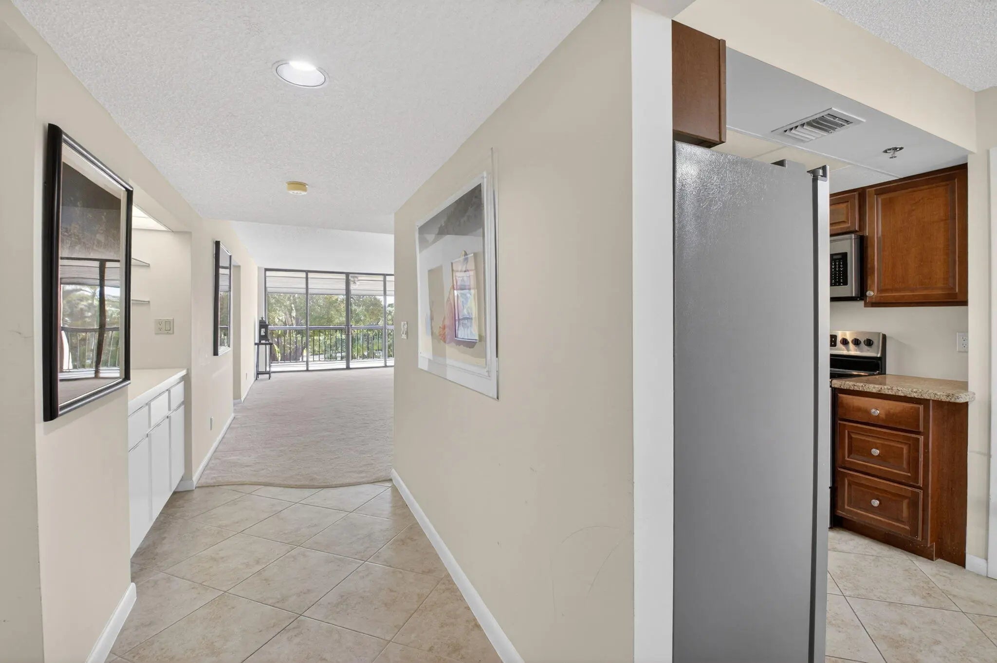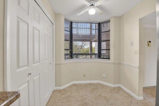 Light and bright 2 bedroom 2 bath condo located on the third floor in a centrally located 55+ Boca Raton community. Enjoy peaceful views of lush green space and the Via Mizner golf course from your oversized balcony. This open and airy home features a desirable split floor plan with spacious bedrooms and abundant natural light throughout. The primary suite offers beautiful views, generous closet space, and a well appointed bath. A separate large laundry and utility room with extra storage.The updated kitchen features wood cabinetry, granite countertops, stainless steel appliances, a large pantry, and a bright breakfast area. A brand new electric panel was recently installed. The Glens is a gated community offering a clubhouse, heated pool and spa, fitness center, sauna, billiards room,