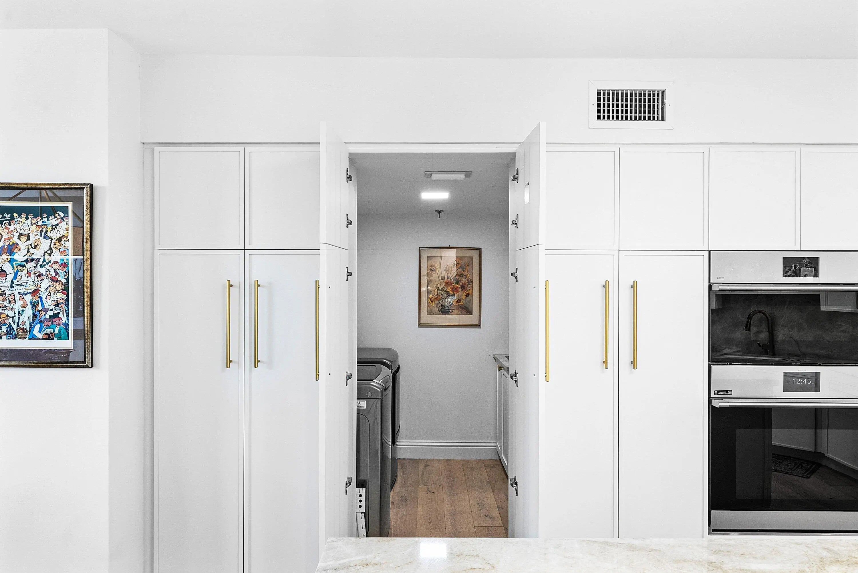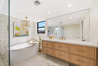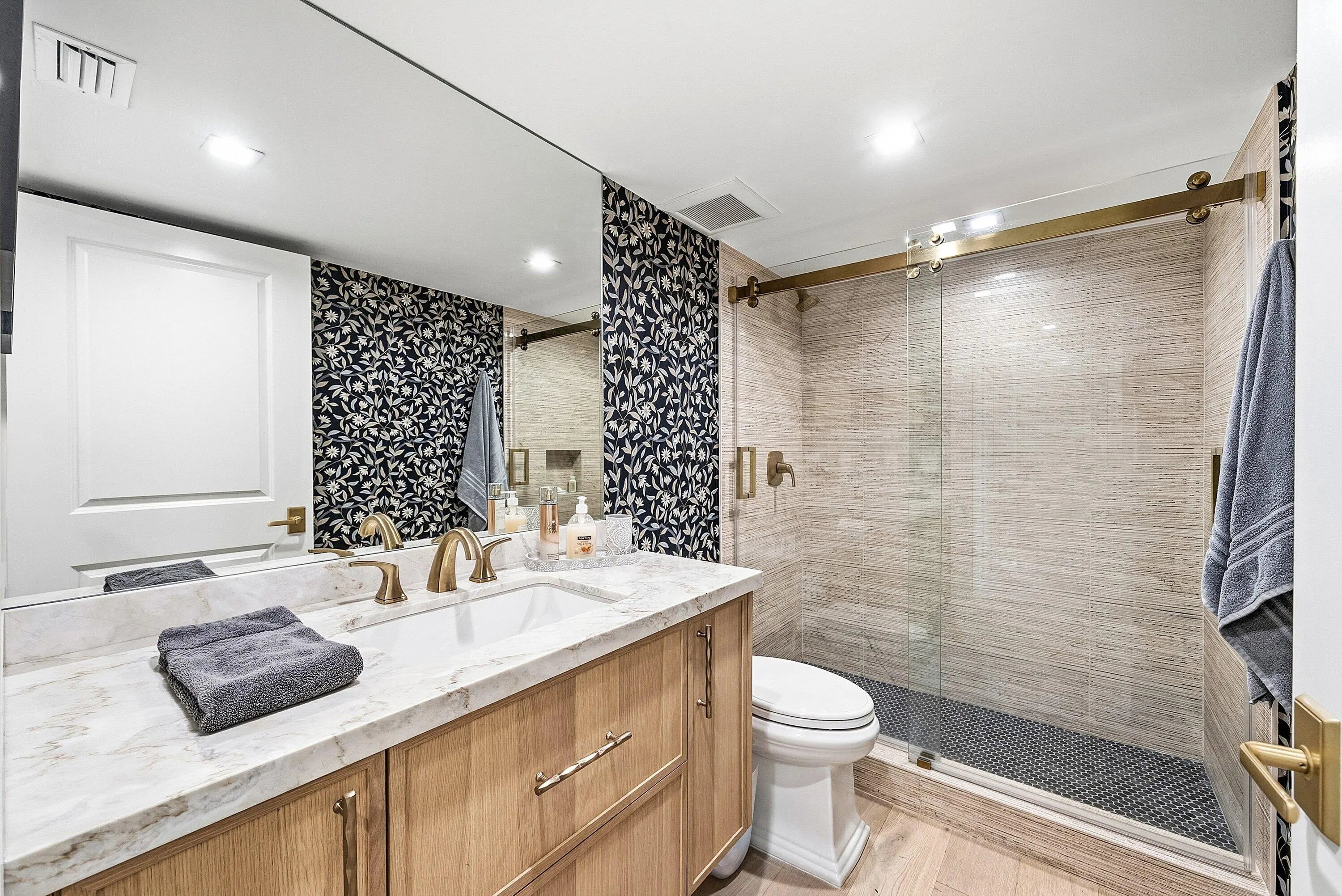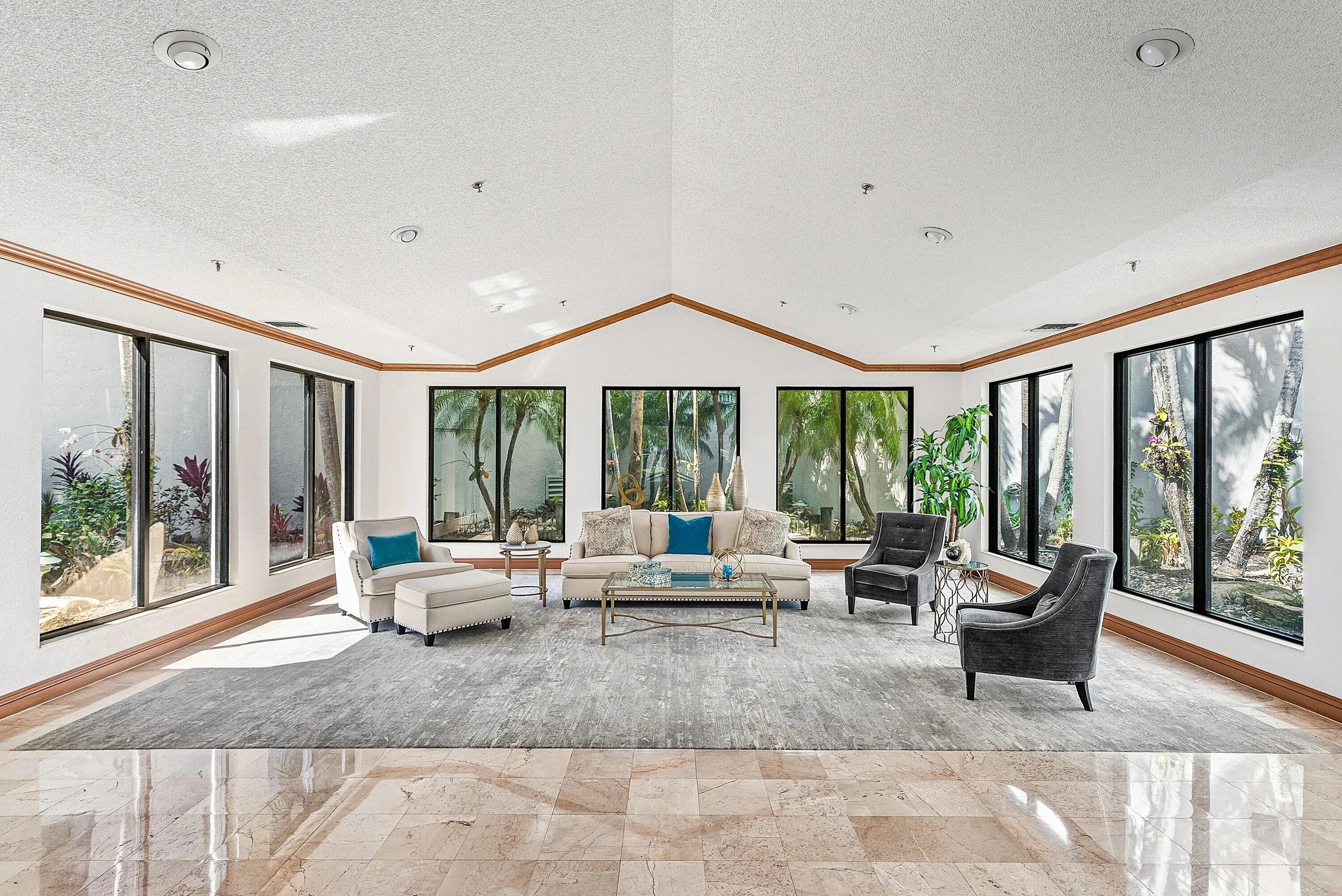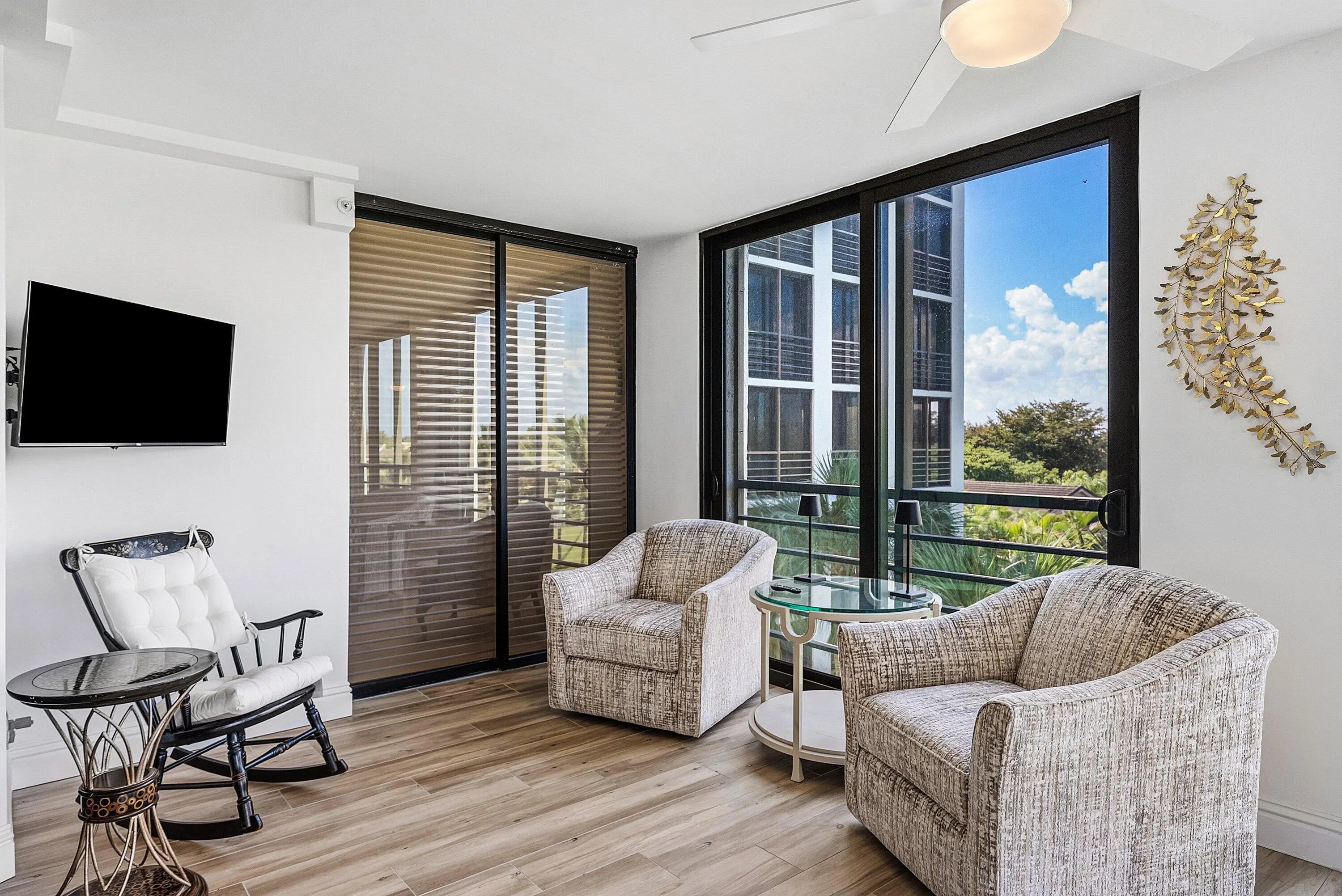 Located in a quiet gated enclave within Boca Pointe (non-mandatory club), this boutique building offers a semi-private entry shared by only two residences. All SIRS milestone inspections completed - NO ASSESSMENTS. Turnkey, fully HIGH-END renovated true 3BR + OFFICE condo with over 3,000 sq ft of sophisticated living in neutral tones. Features include rich hardwood floors, custom built-ins, modern wet bar, chef's kitchen with white shaker cabinetry, quartzite counters, GE Cafe appliances, double ovens, wine fridge & walk-in pantry, plus a large laundry room. Expansive primary suite with spa bath & golf views. Hurricane IMPACT windows/doors, new water heater, glass-enclosed sunroom, endless lake & golf vistas. Includes underground parking, storage, pool, spa, clubhouse & optional golf