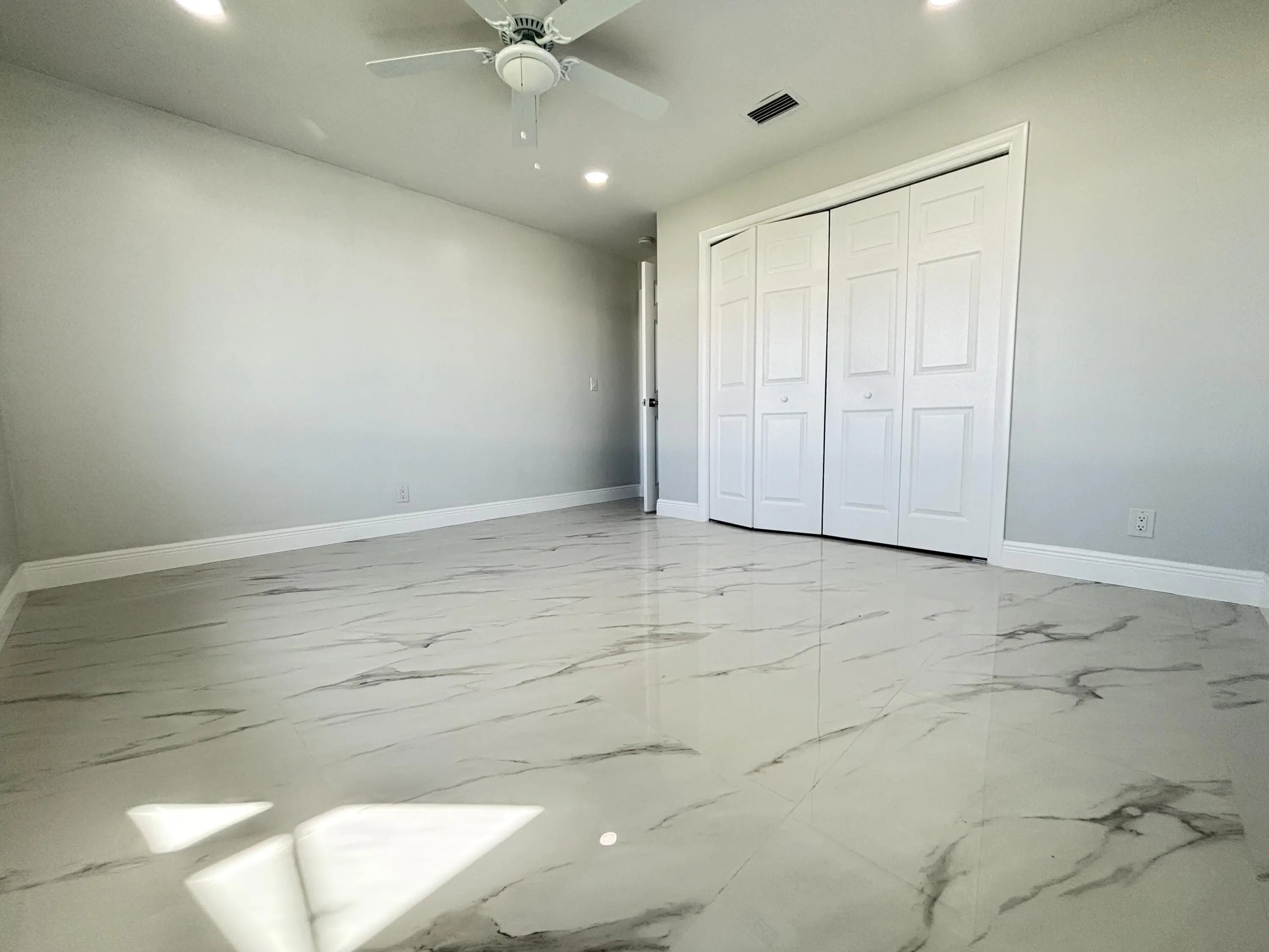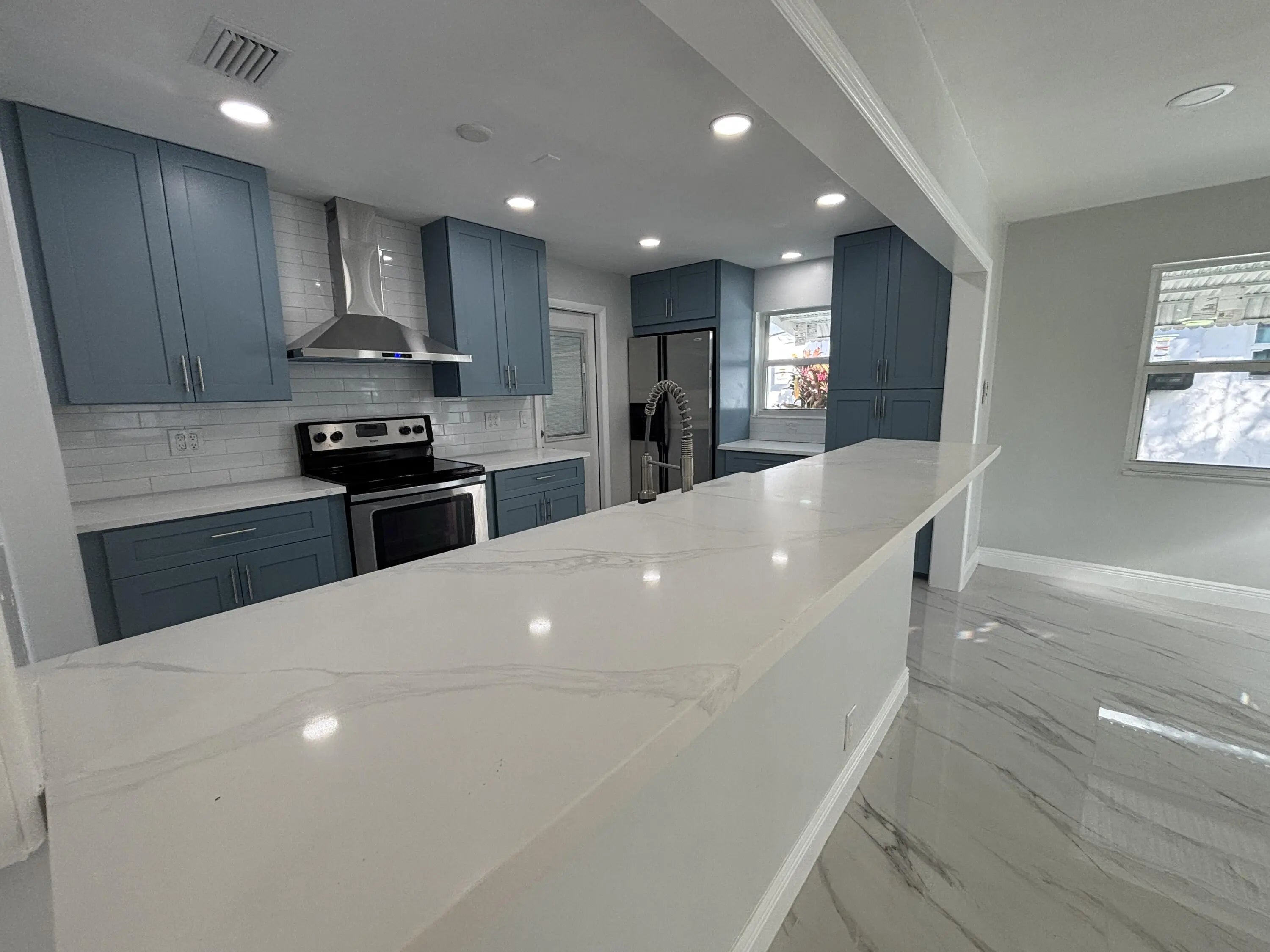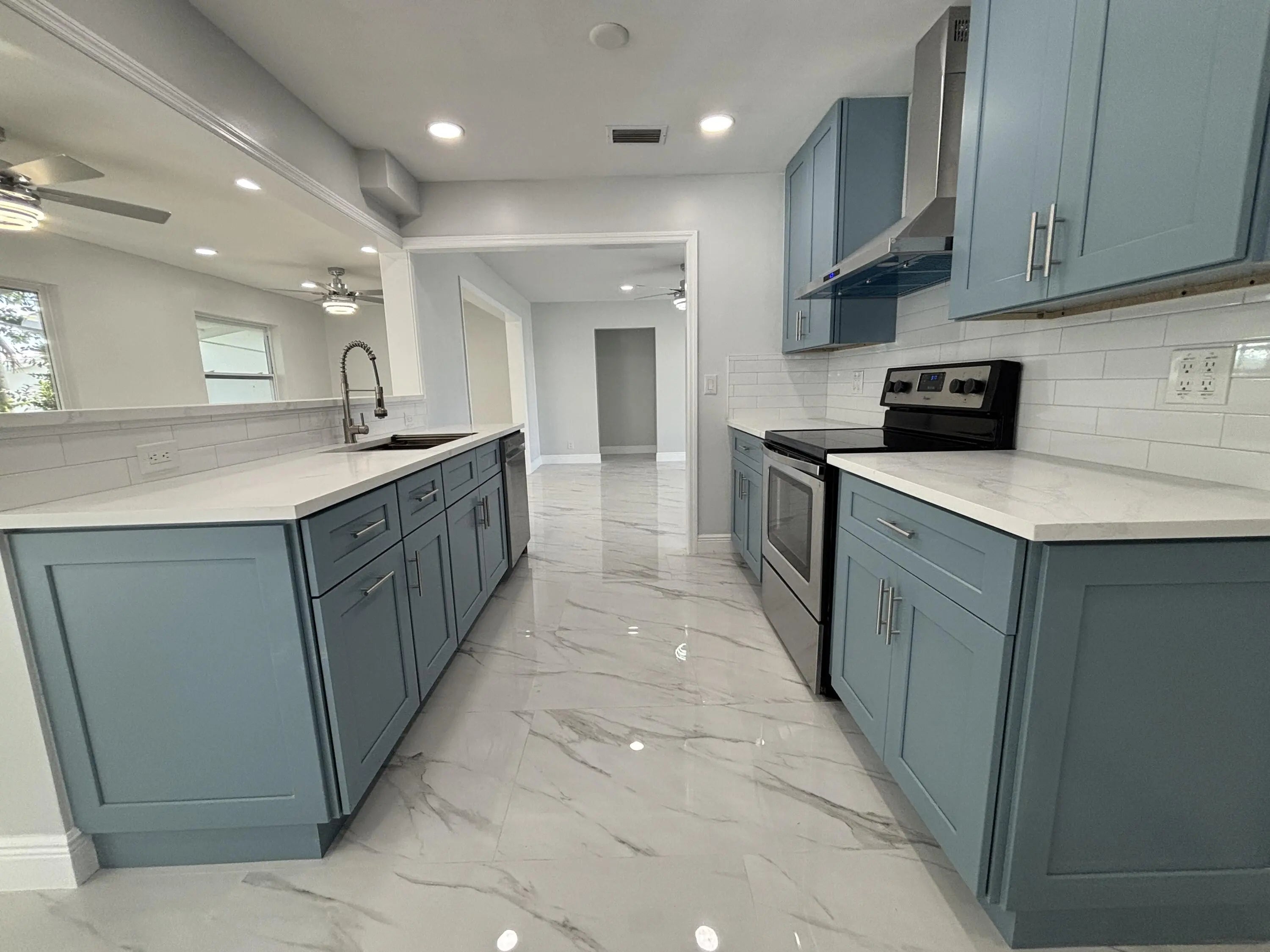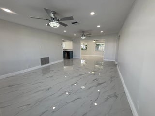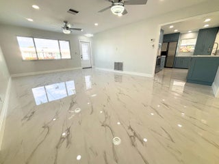 Beautifully renovated 2-bedroom, 2-bath villa in the popular 55+ community of Leisureville, offering a contemporary design with modern comfort throughout. Be the very first to live in this completely updated home, thoughtfully renovated from top to bottom with stylish, high-end finishes.The light-filled interior is enhanced by abundant natural light, showcasing sleek blue cabinetry, newer appliances, updated flooring, modern ceiling fans and light fixtures, fully renovated bathrooms, epoxy-coated floors, a new A/C system, and a new water heater. Every detail was carefully selected for both style and functionality.