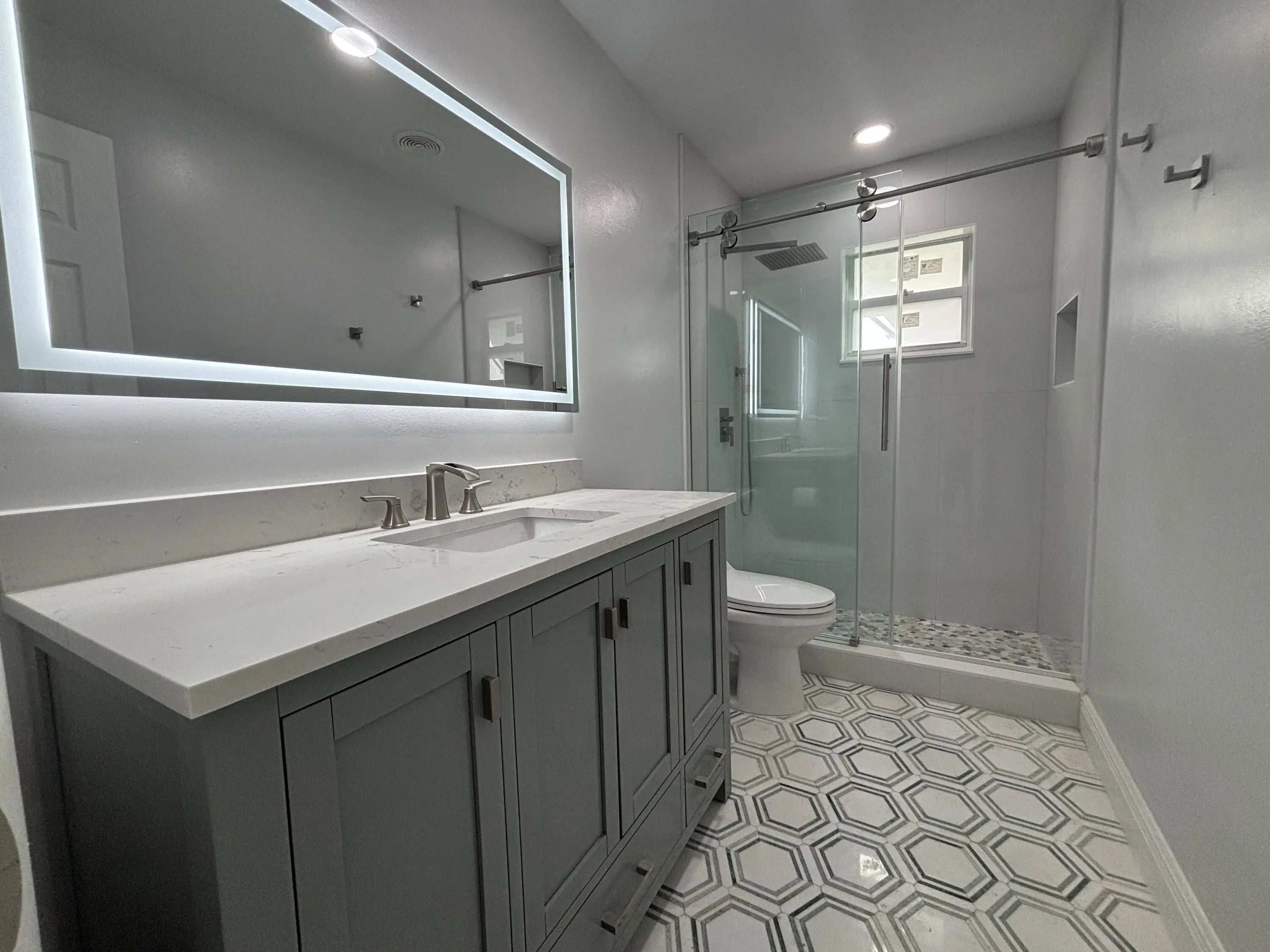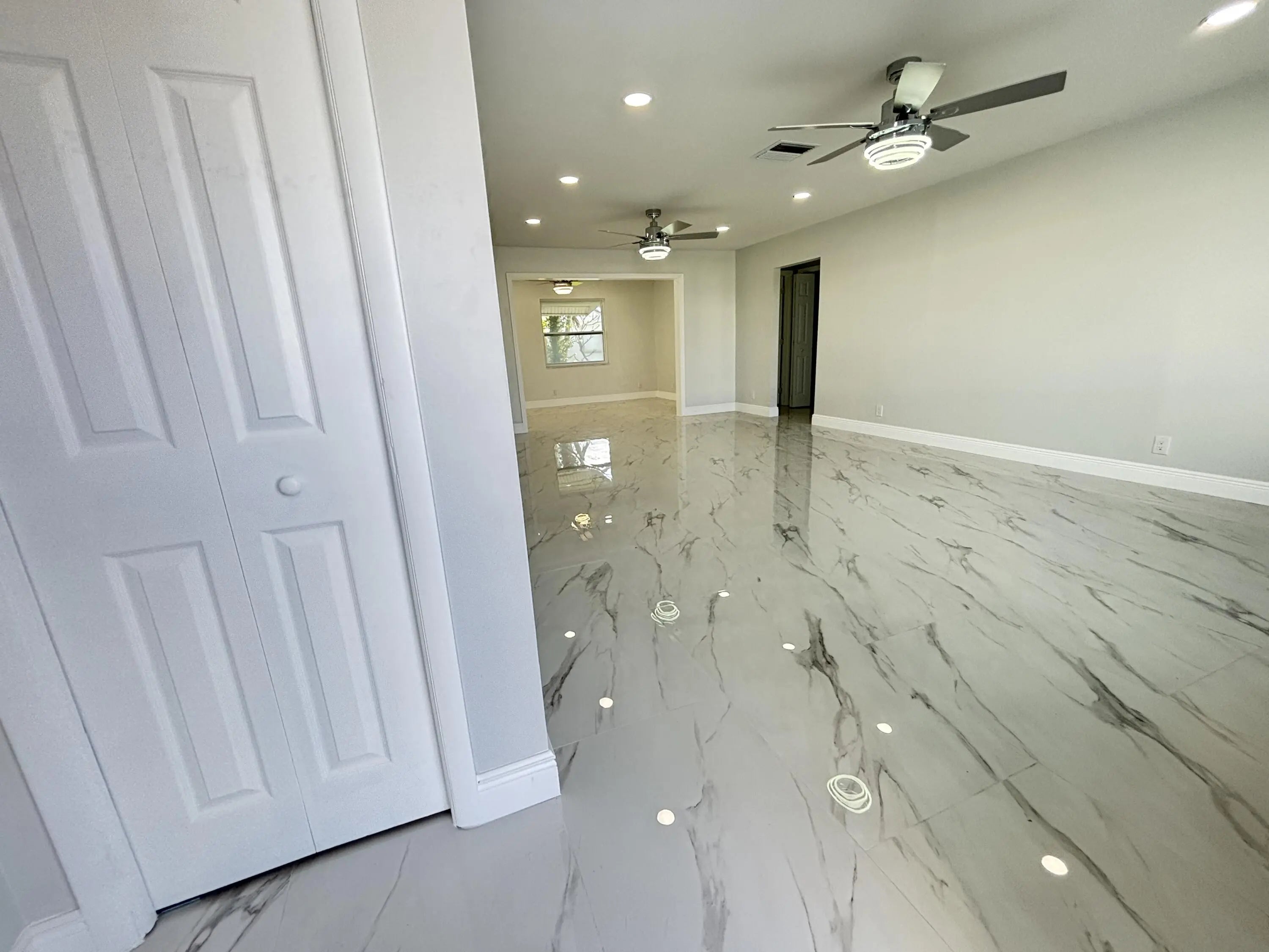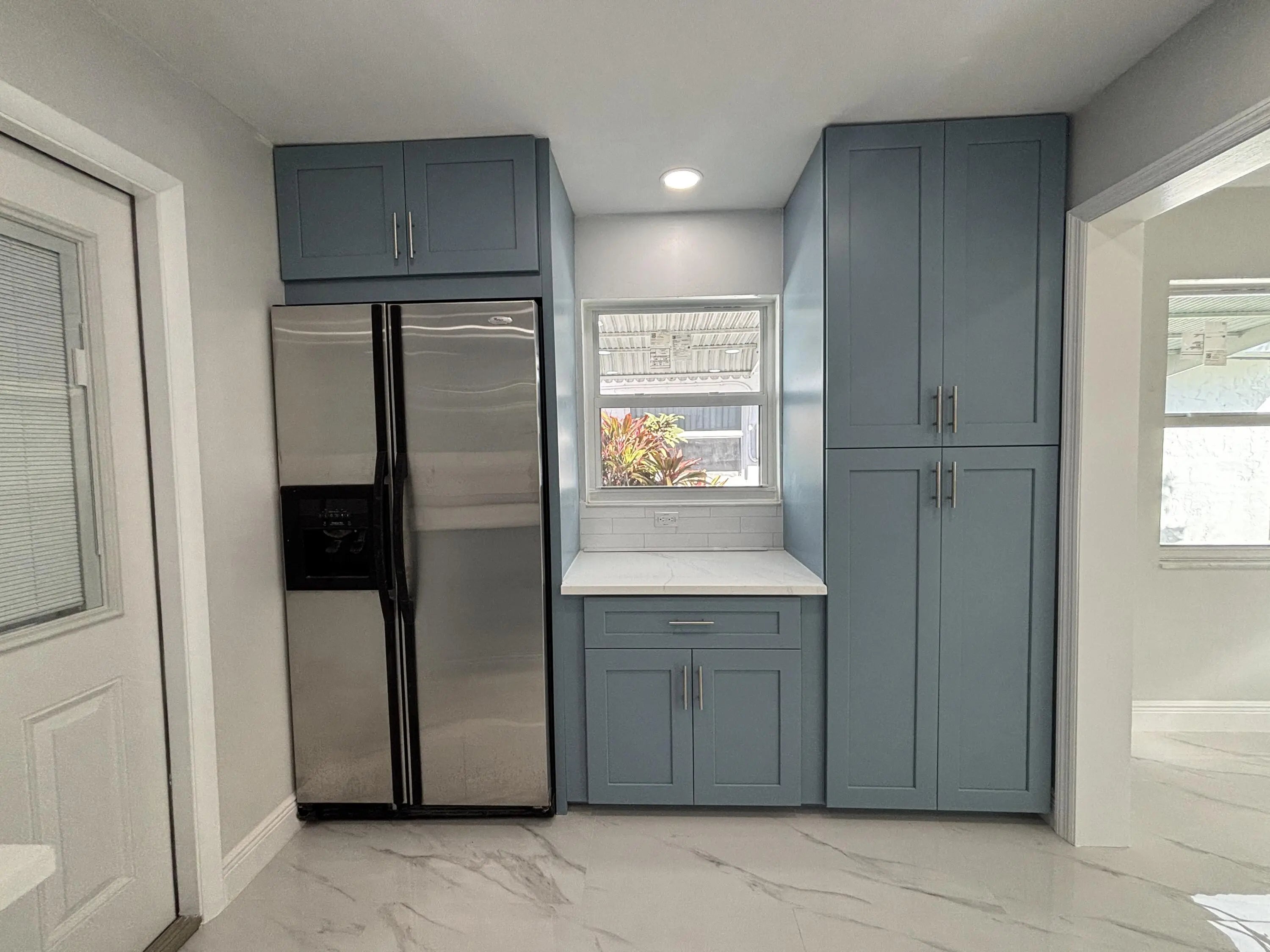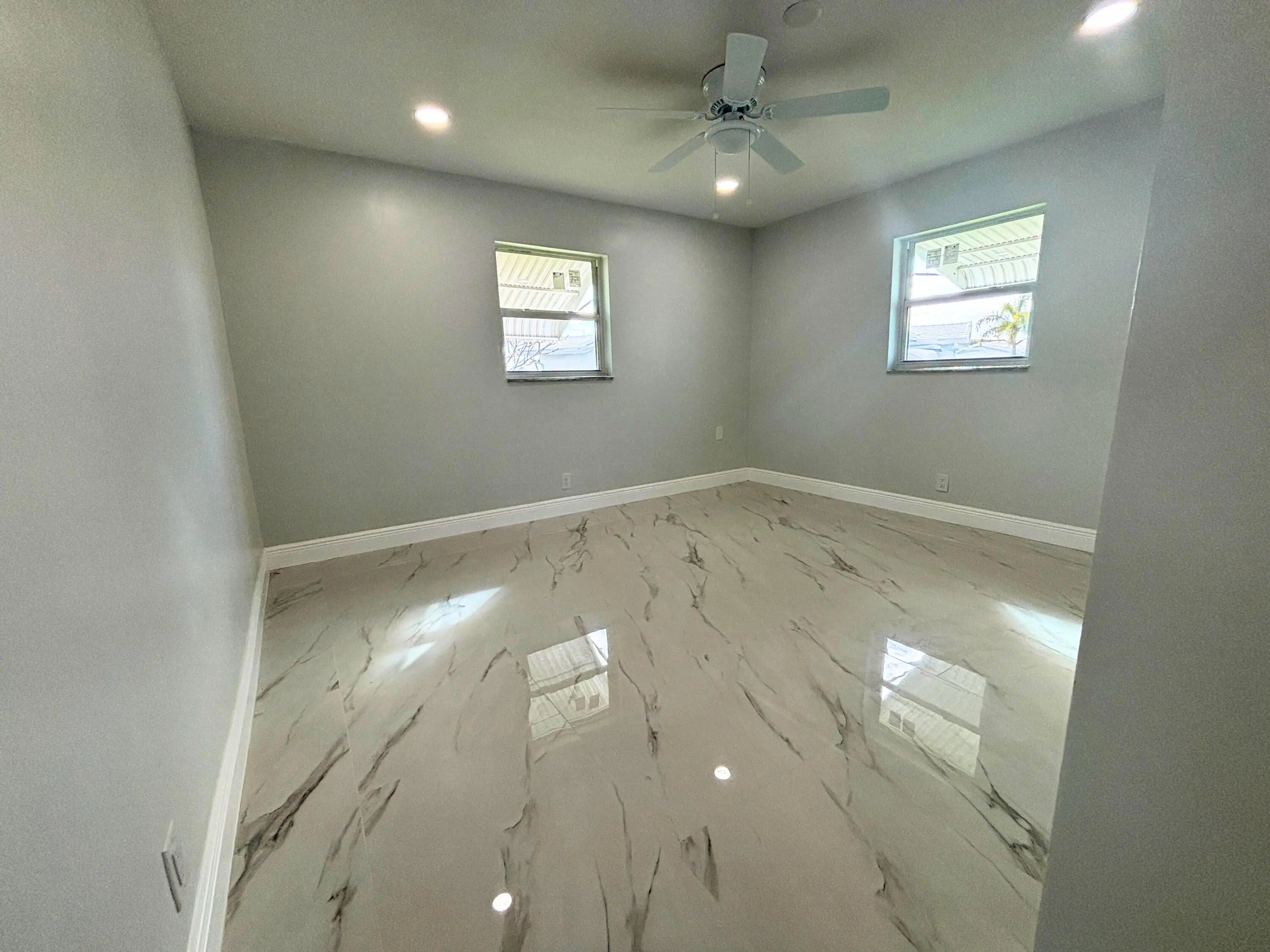 Beautifully renovated 2-bedroom, 2-bath villa in the popular 55+ community of Leisureville, offering a contemporary design with modern comfort throughout. Be the very first to live in this completely updated home, thoughtfully renovated from top to bottom with stylish, high-end finishes.The light-filled interior is enhanced by abundant natural light, showcasing sleek blue cabinetry, newer appliances, updated flooring, modern ceiling fans and light fixtures, fully renovated bathrooms, epoxy-coated floors, a new A/C system, and a new water heater. Every detail was carefully selected for both style and functionality.