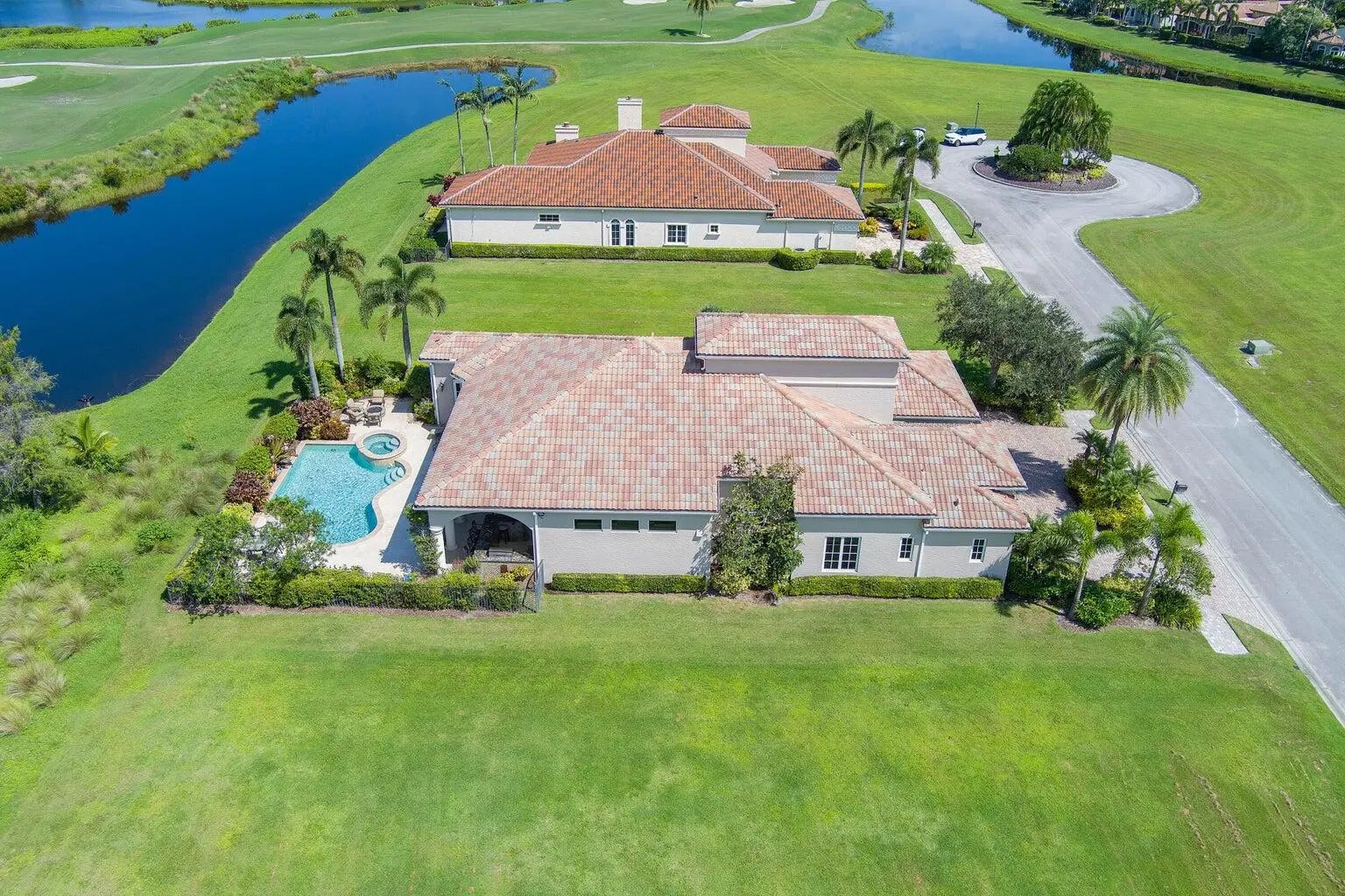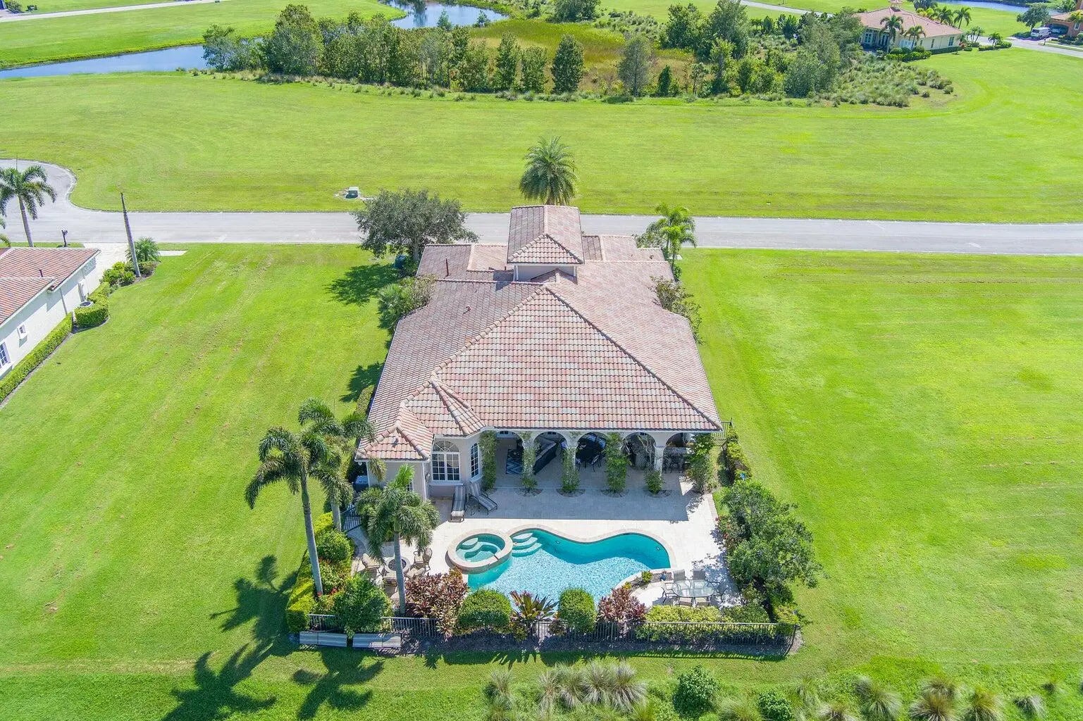 Experience privacy in this fully furnished and turnkey Tuscan-style home. The 37ft. long covered porch overlooks a newly resurfaced lap pool with a hot tub & features an outdoor kitchen with a natural gas grill; the fire pit has views of a preserve, 16th fairway & pond. 5 double French doors lead from the porch into the Great room & kitchen. The refinished marble floors accent all the indoor entertainment areas. The private office/den has wood floors. Each Bedroom with ensuite baths, designed for maximum privacy, has been updated with new carpets. The Main Bedroom suite has a 14 ft high tray ceiling, both his & her private baths, and 2 walk-in closets featuring custom cabinets. Updated AC's, New pool heater, Tankless water heater, EV Car & Golf Cart charger, 400 amp electric service
