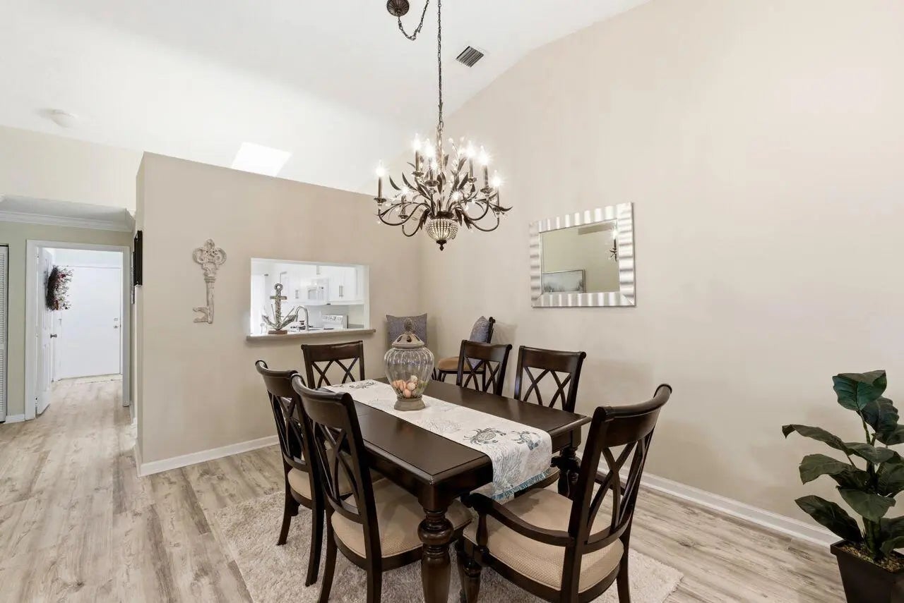 Welcome to 33 Sausalito Dr. This lovely, and intimate villa style home is so pleasant to be in. It's modern design with pass thru from eat-in kitchen to dining room, contemporary wood style flooring, skylight in the kitchen and sliders to screened in patio makes one walk in and feel right at home. This is the largest of the 2 bedroom homes in the Sausalito community at 1576 sf and over 2000 sf including 2 car attached garage and patio. The 2 split bedrooms with den, offer plenty of living space and the community with its tennis courts, pool and clubhouse are a fine option at a moderate price. Come see for yourself. Newer furniture for sale.