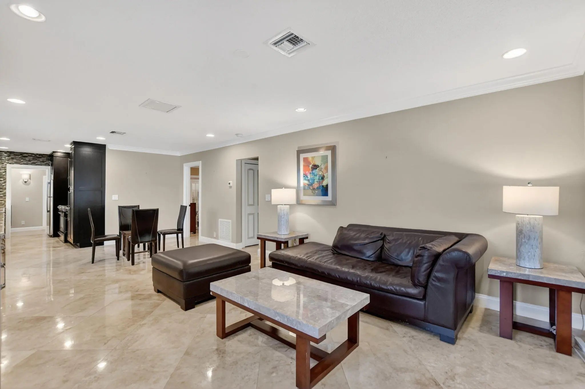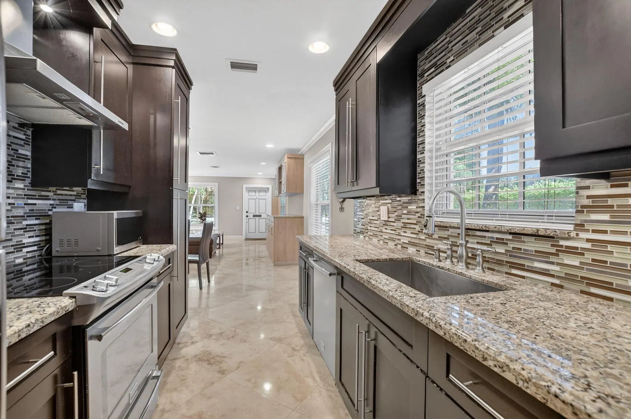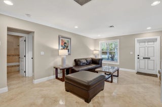 End unit villa just two blocks from the beach in one of Boca Raton's most desirable locations! Perfect opportunity to enjoy coastal living at its best. Spacious living room features custom built-in cabinets and drawers, along with a formal dining room. Updated kitchen offers granite countertops, stainless steel appliances, and a sleek hood. Impact glass windows and doors, and marble floors run throughout the home. Air-conditioned sunroom adds valuable extra living space. 2nd bedroom includes a closet with built-in shelving, and the second bath features a tub with glass enclosure. Master suite offers built-in shelving in the closet, high-hat lighting, and a master bath with one sink and large shower. Crown molding throughout and one assigned parking space.
