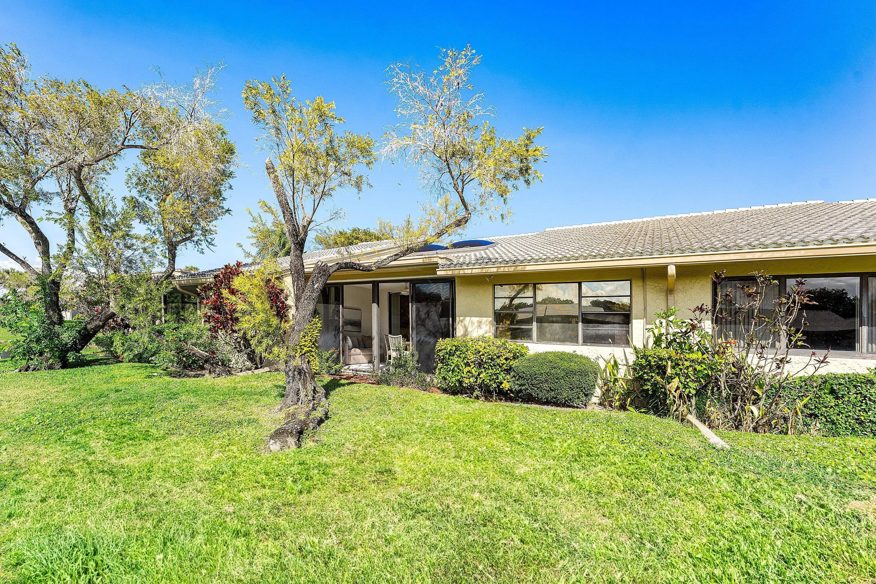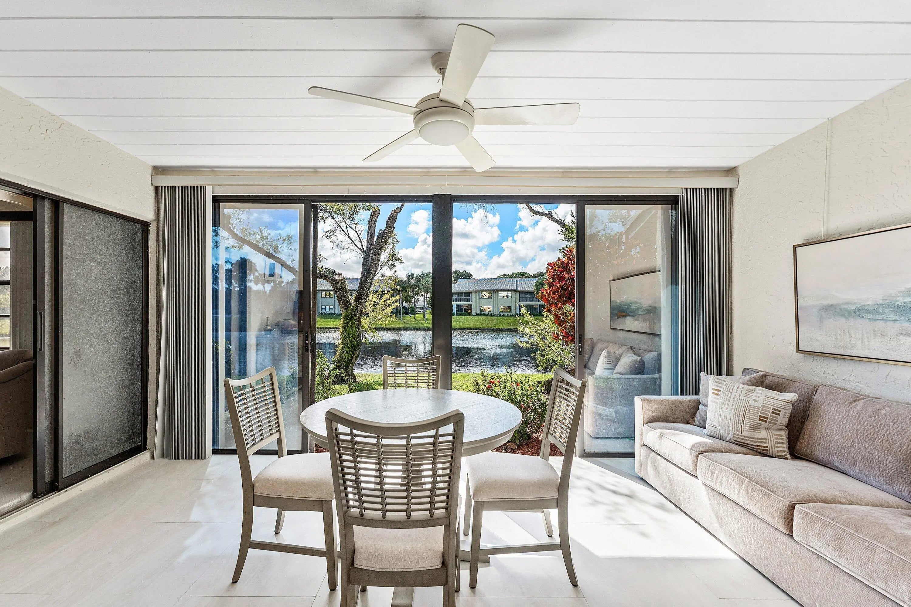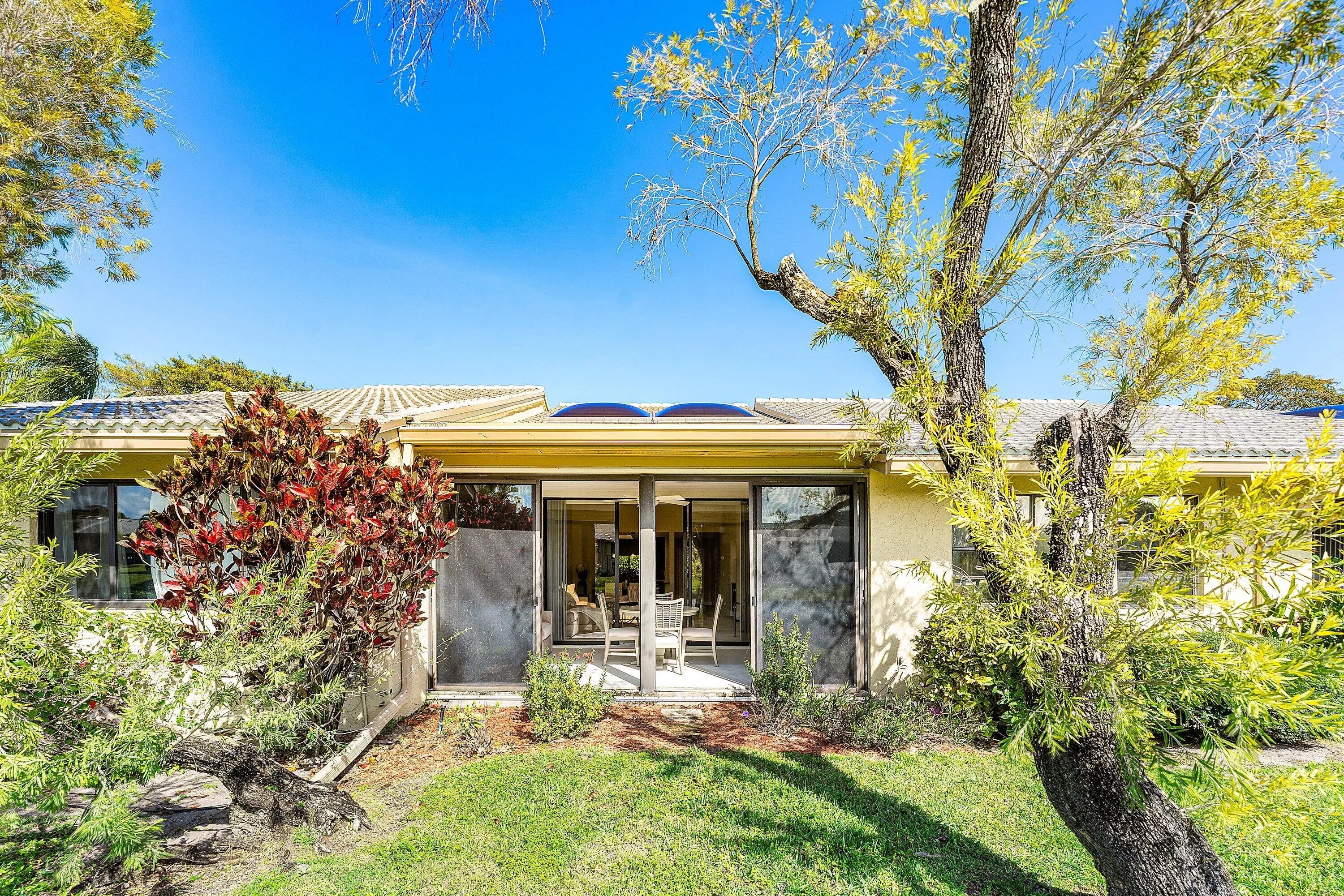 New Initiation fee $150,000 effective 5/2/2026! Recently remodeled 2-bedroom Villa with water views in Eastgate at Hunters Run Country Club. Enter to a sun-filled great room adorned with vaulted ceilings, skylights, recessed LED lighting, and porcelain tile flooring throughout for a sleek contemporary feel. The open-concept eat-in kitchen features beautiful custom cabinetry, stone countertops, and stainless steel appliances. The large primary suite offers an ensuite bathroom, while the king-size guest bedroom enjoys a semi-private bath--ideal for hosting.Enjoy sunset water views from the glass enclosed Florida room. A detached 1-car plus golf cart garage adds everyday convenience. Furniture is negotiable for a turnkey option! Don't delay, make this your home at Hunters Run today!