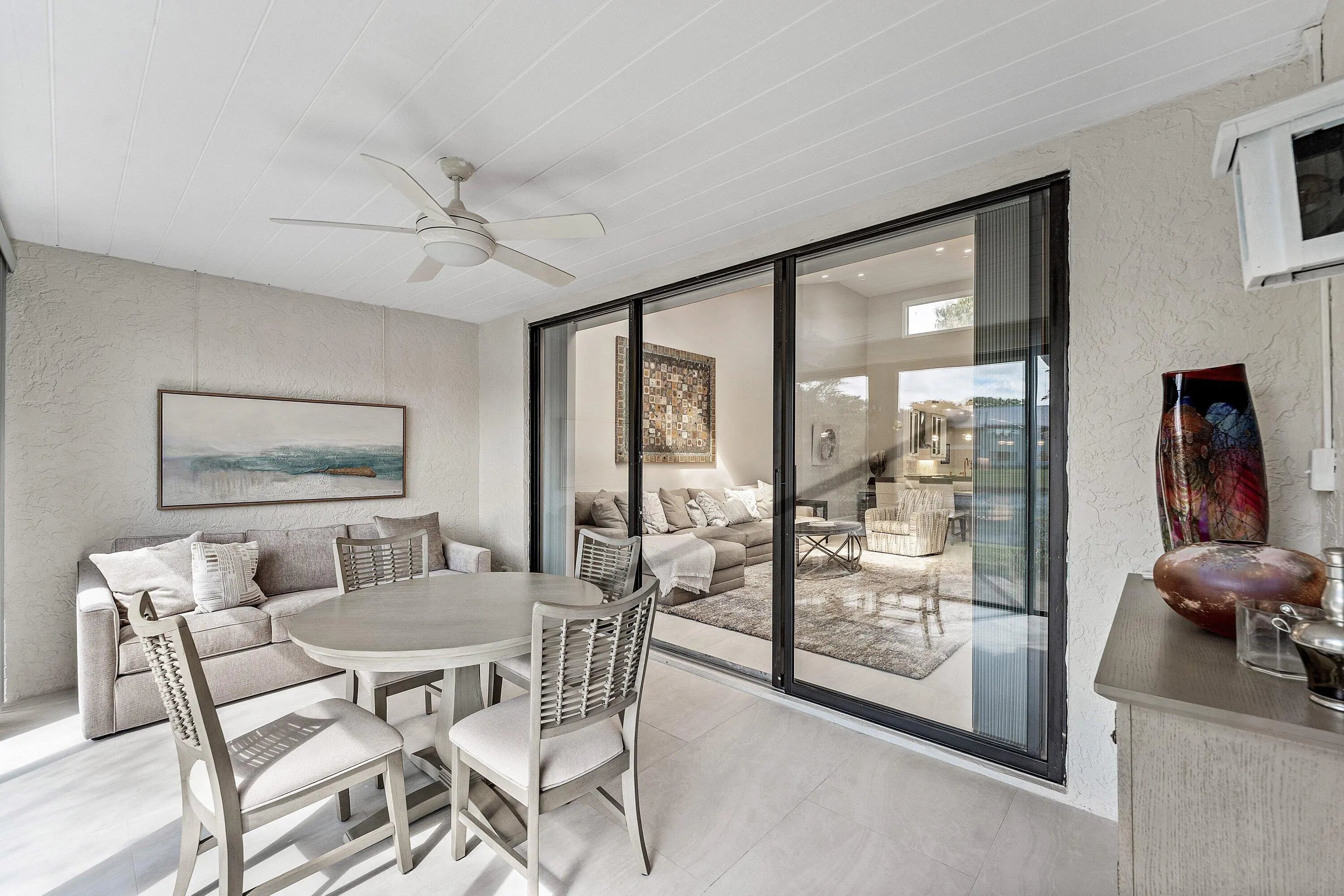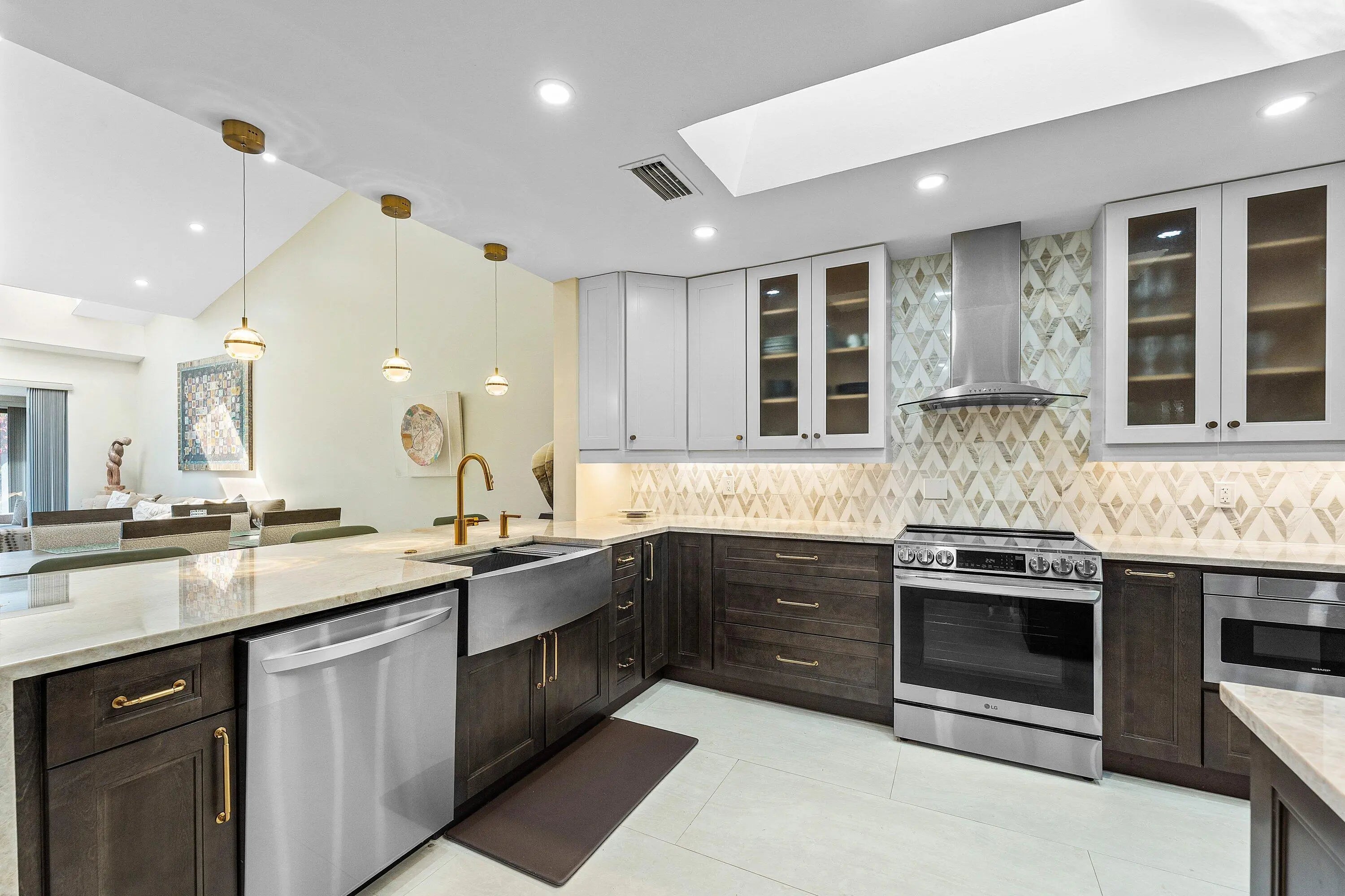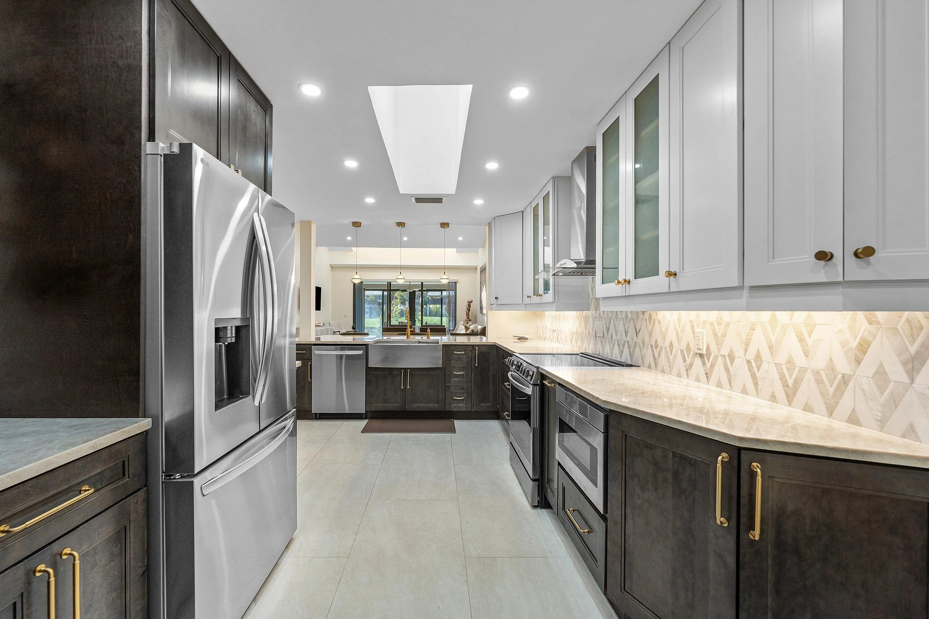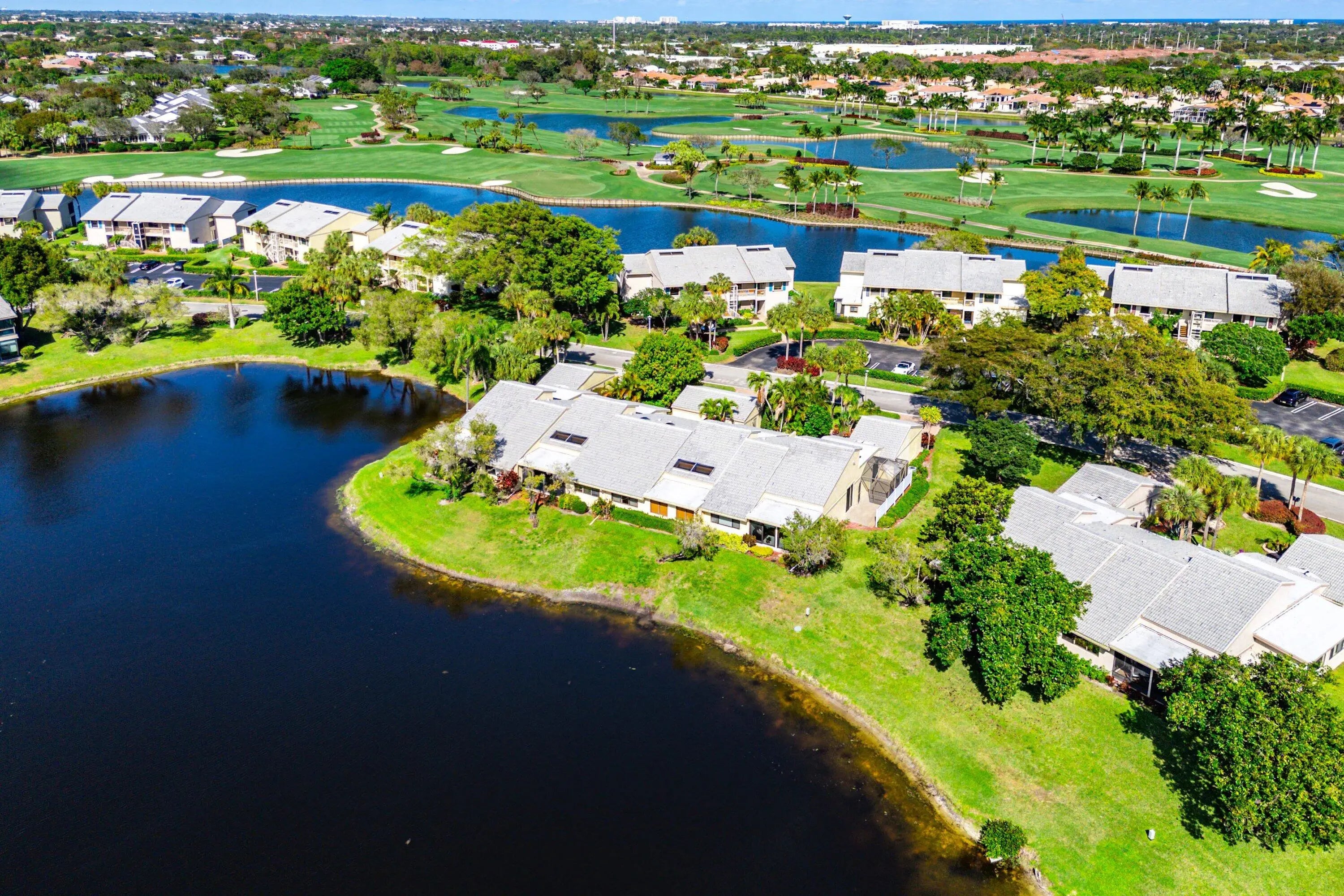 New Initiation fee $150,000 effective 5/2/2026! Recently remodeled 2-bedroom Villa with water views in Eastgate at Hunters Run Country Club. Enter to a sun-filled great room adorned with vaulted ceilings, skylights, recessed LED lighting, and porcelain tile flooring throughout for a sleek contemporary feel. The open-concept eat-in kitchen features beautiful custom cabinetry, stone countertops, and stainless steel appliances. The large primary suite offers an ensuite bathroom, while the king-size guest bedroom enjoys a semi-private bath--ideal for hosting.Enjoy sunset water views from the glass enclosed Florida room. A detached 1-car plus golf cart garage adds everyday convenience. Furniture is negotiable for a turnkey option! Don't delay, make this your home at Hunters Run today!
