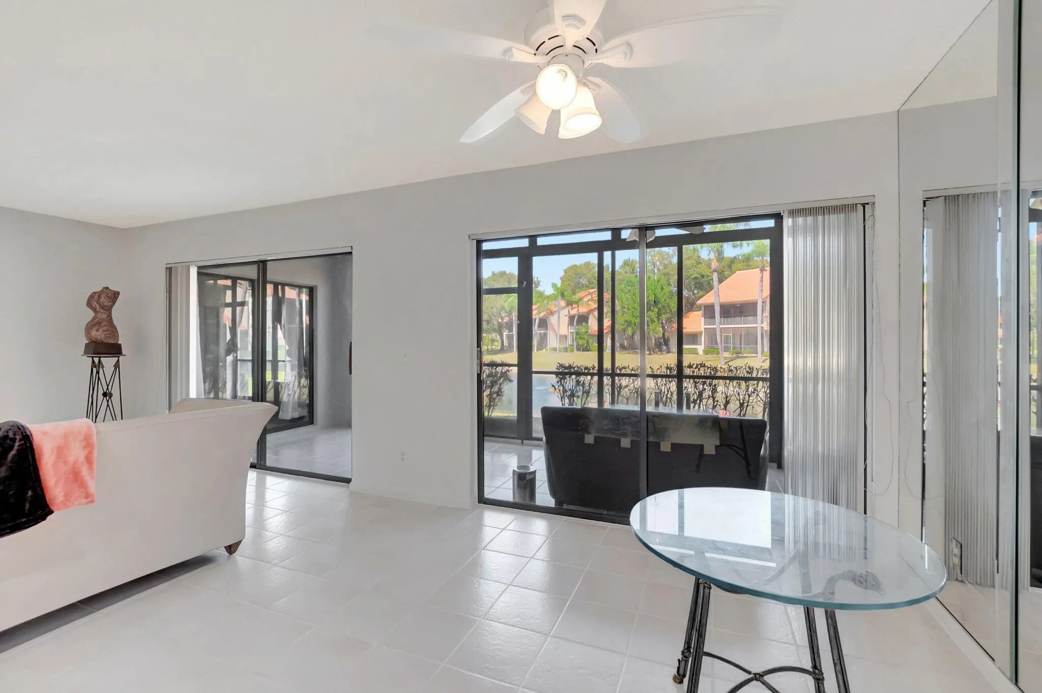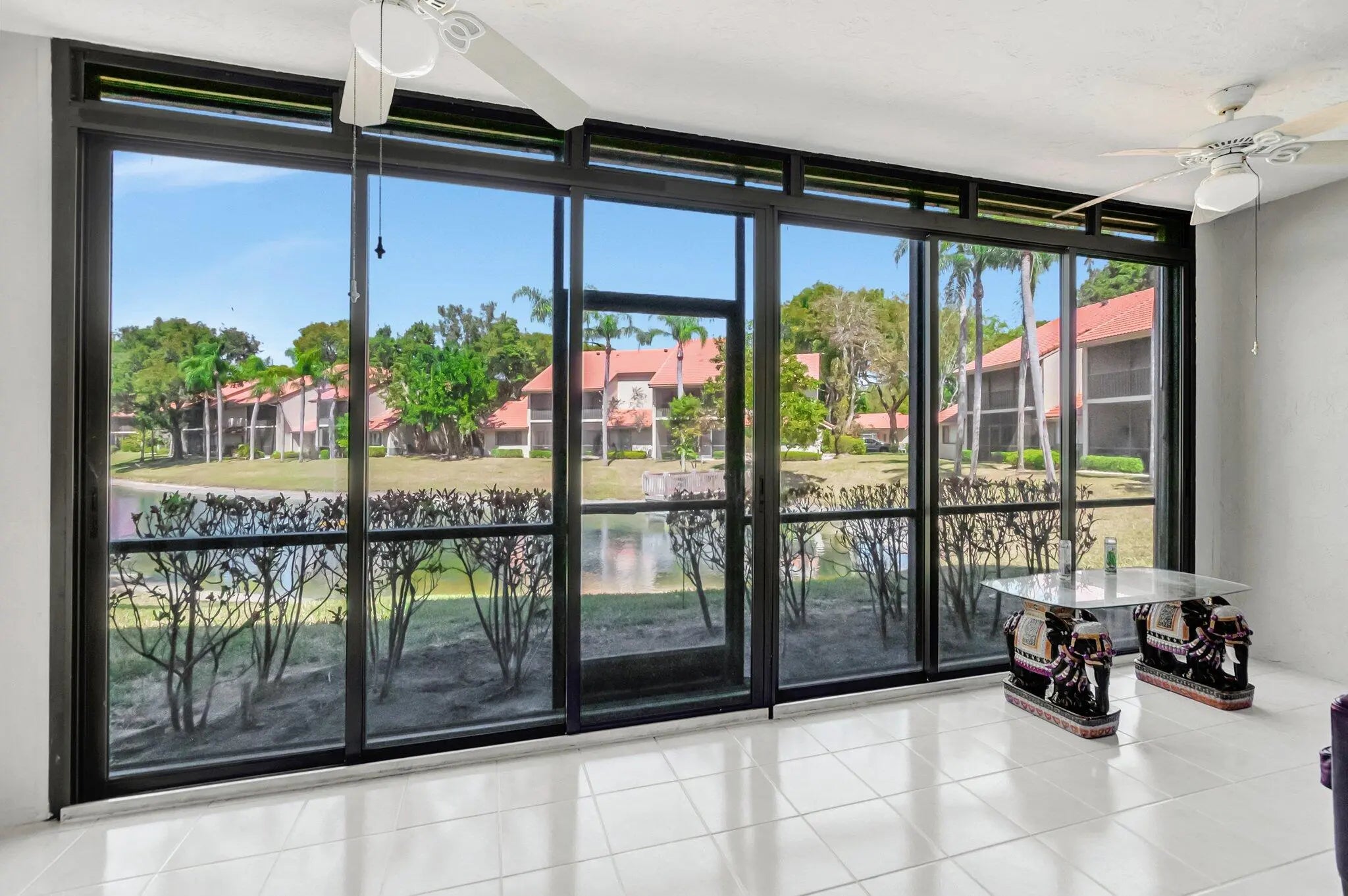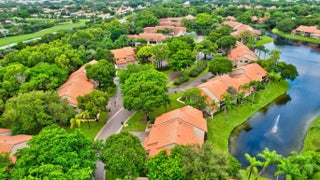 BEST BUY IN COACH HOUSES! RARE FIRST FLOOR CORNER UNIT lakefront residence perfectly located in the Town Center area. Light bright open floorplan offers tile floors, open kitchen, smooth ceilings & stainless steel appliances. Relax & enjoy your spacious enclosed Florida room boasting tranquil wide lake & fountain views. Great for added living space. Coach Houses offers 2 heated community pools, walking trail to city owned Tennis & Swim Club, Town Center Mall, Publix, Walgreens, CVS, restaurants & shops. Low monthly fee includes cable, roof, landscaping, building insurance, water & exterior maintenance. One car garage w/large storage room. Close to great schools, FAU & Lynn University, I95 & Turnpike. Short drive to the best Boca beaches, Mizner Park & fine dining. Pet friendly!
