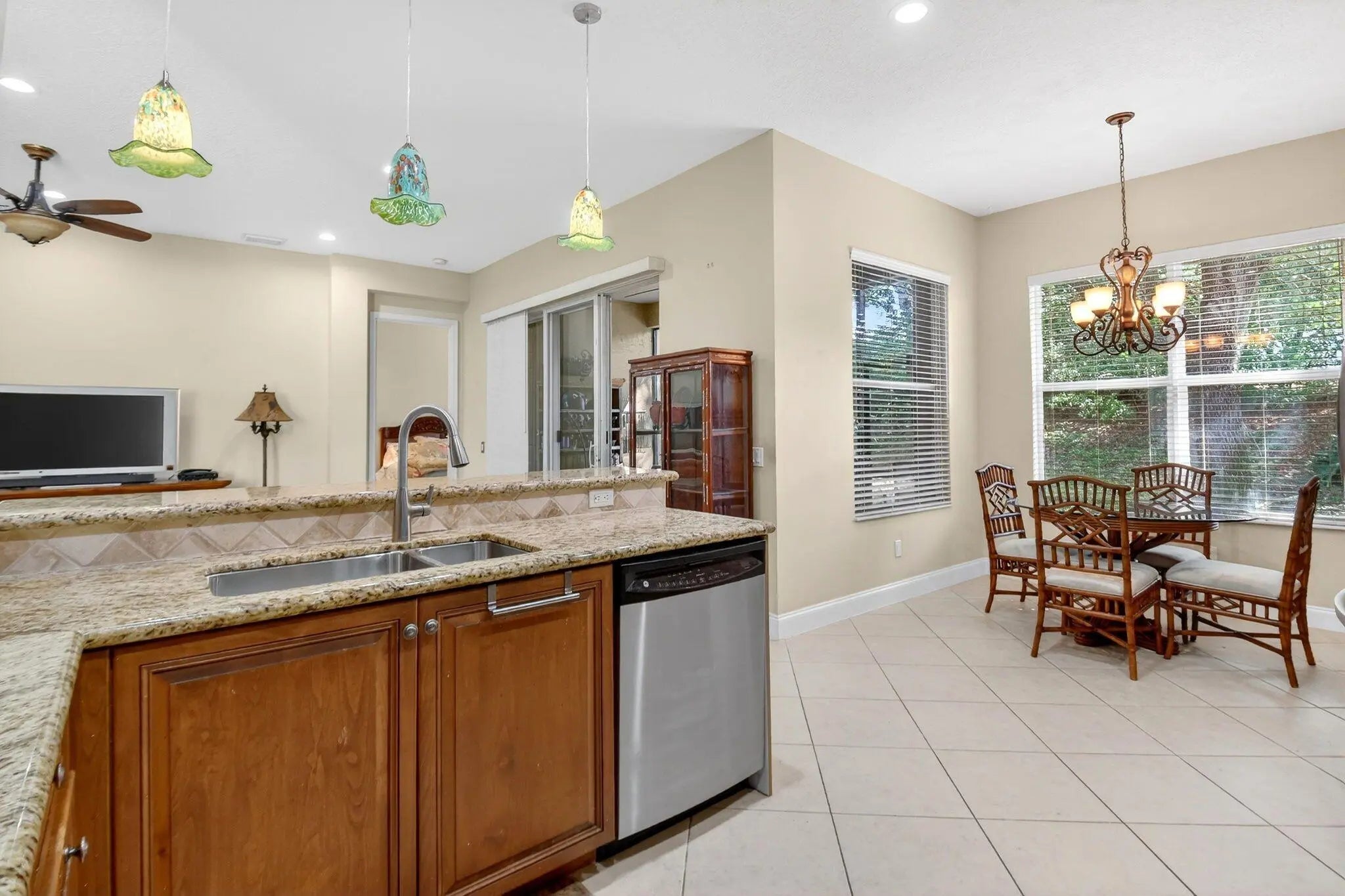 Welcome to your tropical retreat in Valencia Pointe! This fabulous Isabelle model immediately impresses with its open-concept flow and serene garden views. The heart of the home is the extended kitchen, boasting walls of cabinetry with convenient pullouts and sleek stainless appliances--perfect for the home chef. Retreat to a spacious family room or host formal dinners in the dedicated dining area. With diagonal ceramic tile throughout the main living spaces and new carpeting in the second bedroom, this home is move-in ready. The versatile den can easily serve as a third bedroom for guests. Valencia Pointe's 35,000 sq ft updated clubhouse and lifestyle center offers a grand social hall, fitness center, aerobics, multiple card/poker rooms, arts and crafts, tennis, pickleball and bocce!