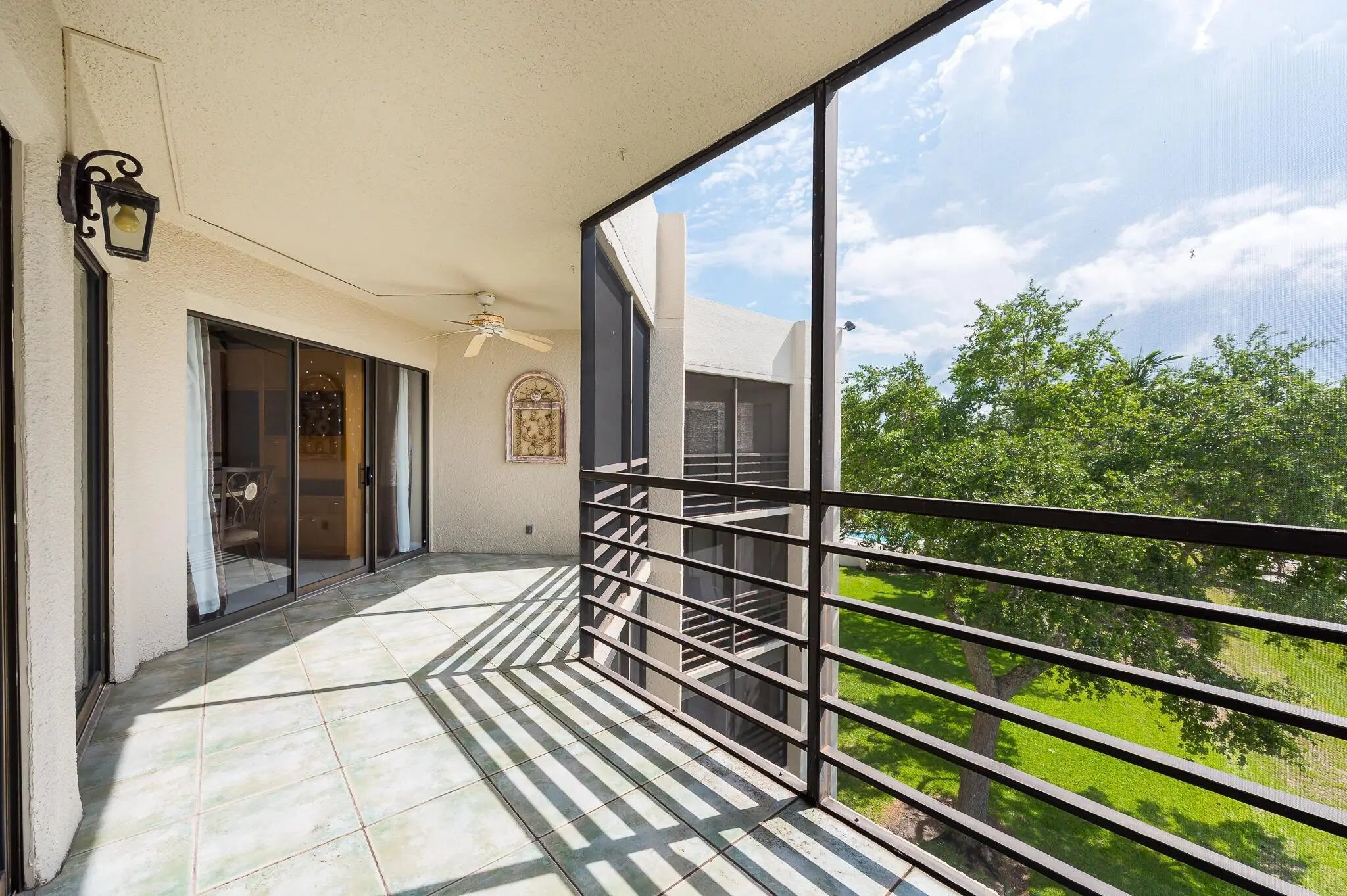 Prime location! All-ages community in the heart of Boca Raton. This is a large 2BR/2BA condo on the top floor with beautiful balcony overlooking pool and garden. Camino Real Village is highly sought-after development with A-rated schools. The spacious primary suite offers both a walk-in and wall closet, plus a large bathroom, shower and a spa tub. The unit has washer and dryer in separate closet. The AC, water heater and SS appliances were all installed in 2023. Enjoy a resort-style lifestyle with multiple pools, tennis courts, walking paths and water features throughout. Monthly dues include building insurance, water, reserves, cable/internet, and trash removal. One dedicated and plethora of guest parking.