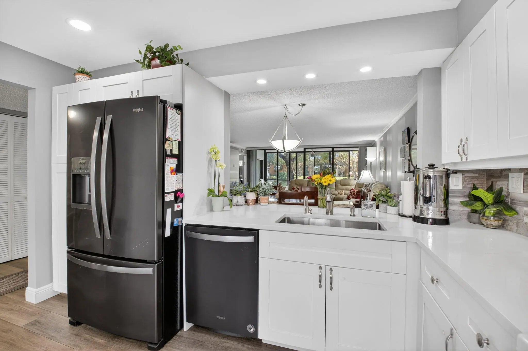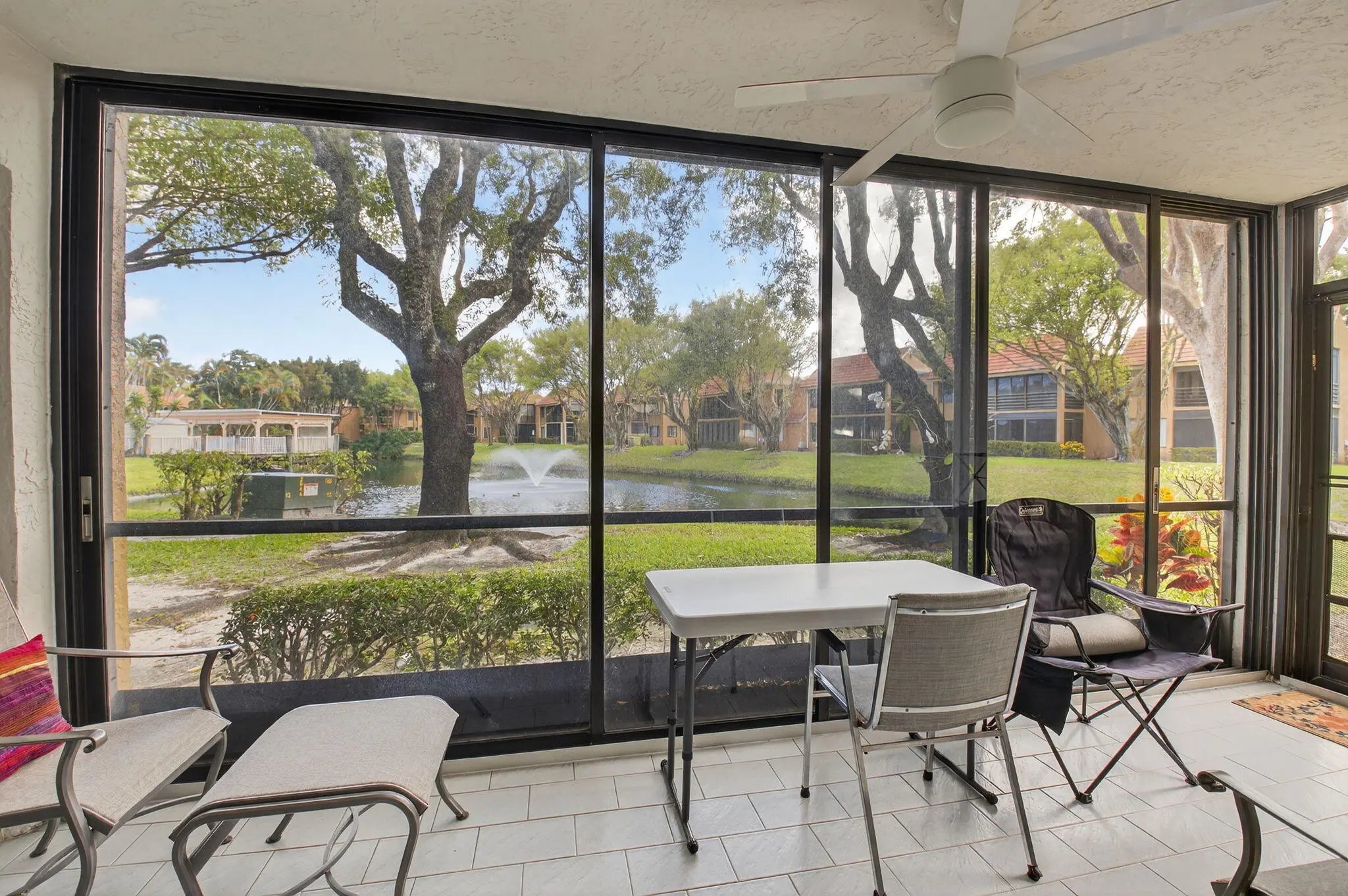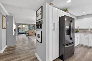 Experience the epitome of modern living in this meticulously renovated 1st-floor condo with serene lake, pool area and fountain views that create a tranquil retreat right outside your door. Home features an unbelievable amount of extra storage, built-ins, etc. Lovely 2 bedroom, 2 bath condo is the largest floor plan and features bright airy kitchen w/white shaker cabinets plenty of drawers, sleek quartz countertops, beautiful tile backsplash, extended pantry closets w/pull out shelves and newer appliances. Open living room and dining room are perfect for entertaining and lead to a large glass-enclosed & screened lanai - perfect for morning coffee or evening cocktails overlooking your private lake setting. Perfect primary suite. Spa-like baths. Close to worship! See additional remarks..