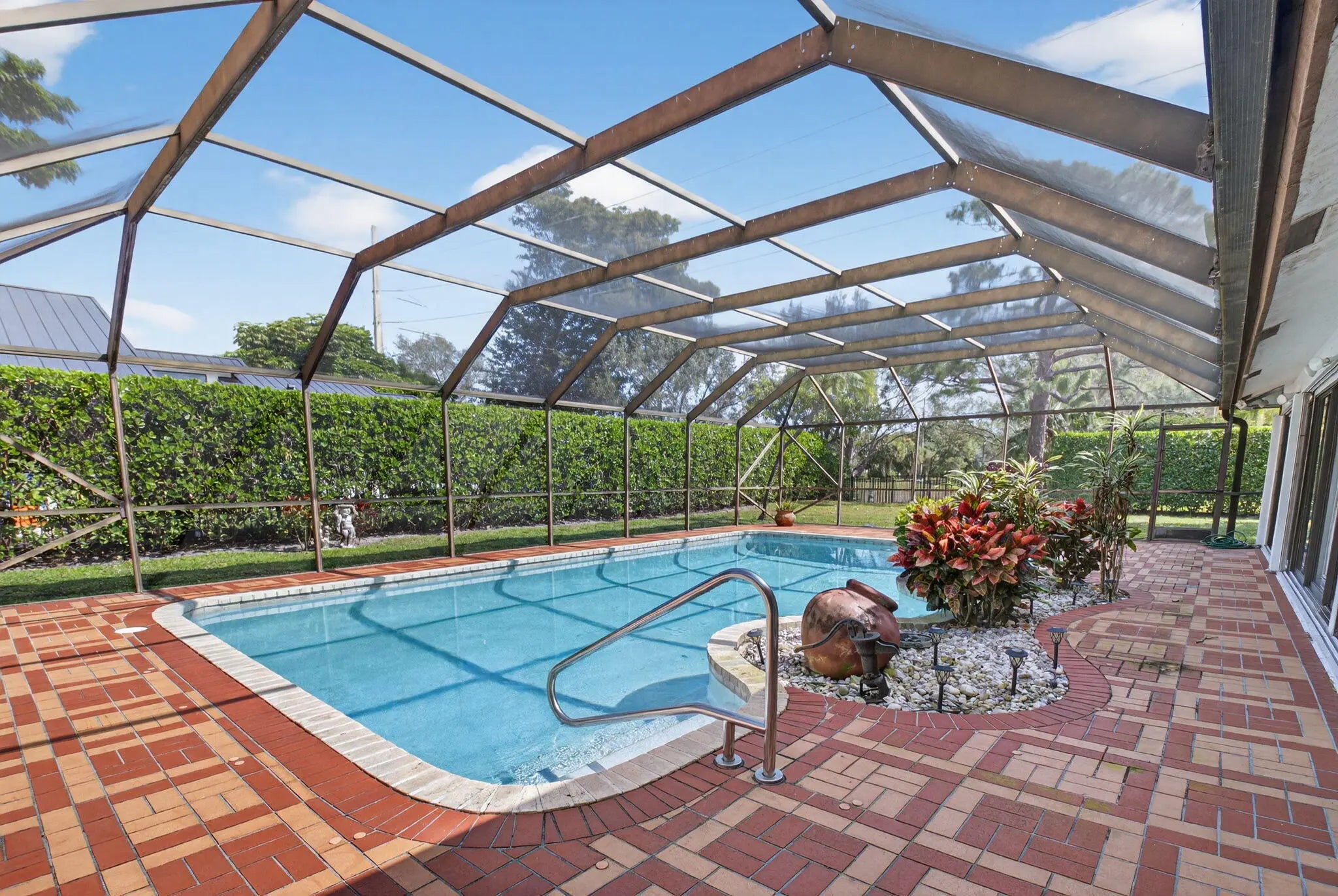 This spacious 1 story pool home on a large corner lot, over half an acre, boasts 4 bedrooms and 3 baths and an oversized two car garage. The seller is the original owner, and it has been cared for diligently. Nestled on a quiet street in highly desirable Boca Bath and Tennis, the home has an ample yard and a substantial amount of parking with it's circular driveway. The home is ready for your personal touches throughout. The roof was redone in 2022. Boca Bath and Tennis is a gated community conveniently located in central Boca Raton. It has 243 homes with over 53 acres of parks and green space. The clubhouse and gym are newly renovated. The community has 8 har-tru tennis courts, a playground, pickleball, volleyball & basketball courts, 3 lakes and a heated and cooled Olympic-sized pool.