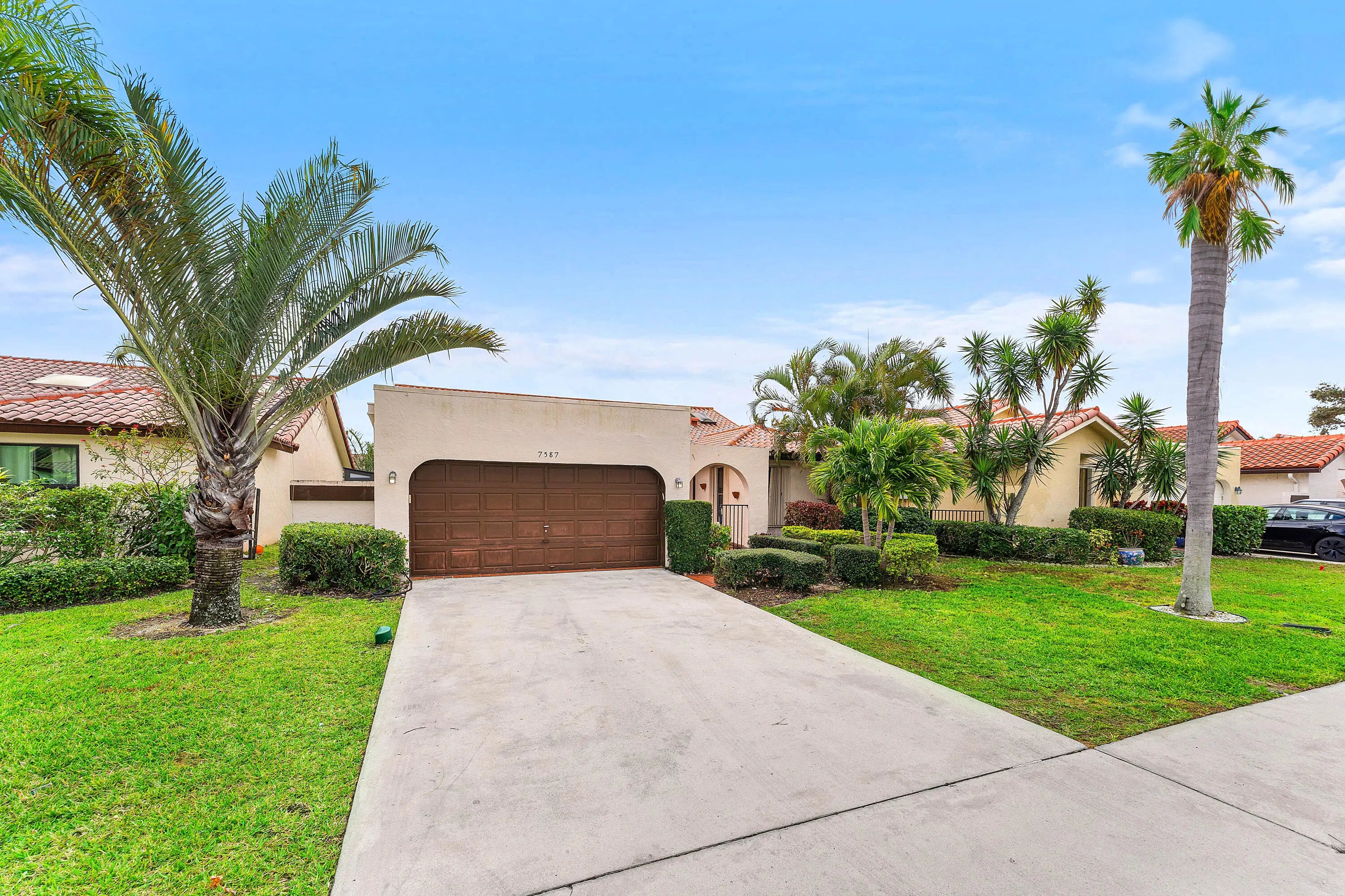 Located at 7587 Solimar Circle in the desirable Solimar community, this beautiful 4 bedroom, 3 bathroom home has 2,142 square feet of tiled living space and boasts upgrades that make it an easy choice for a family home. This home oozes curb appeal. Its arched entrance and tiled veranda framed by landscaping brings you inside to the high volume ceilings and spacious living/dining area. A newer 2022 roof, electrical panel, brand new AC, and all major appliances 3 years or newer. Perfectly located 5-min to Town Center Mall, I95 & within walking distance to houses of worship, community pool, Del Prado Elementary, and shopping/dining.