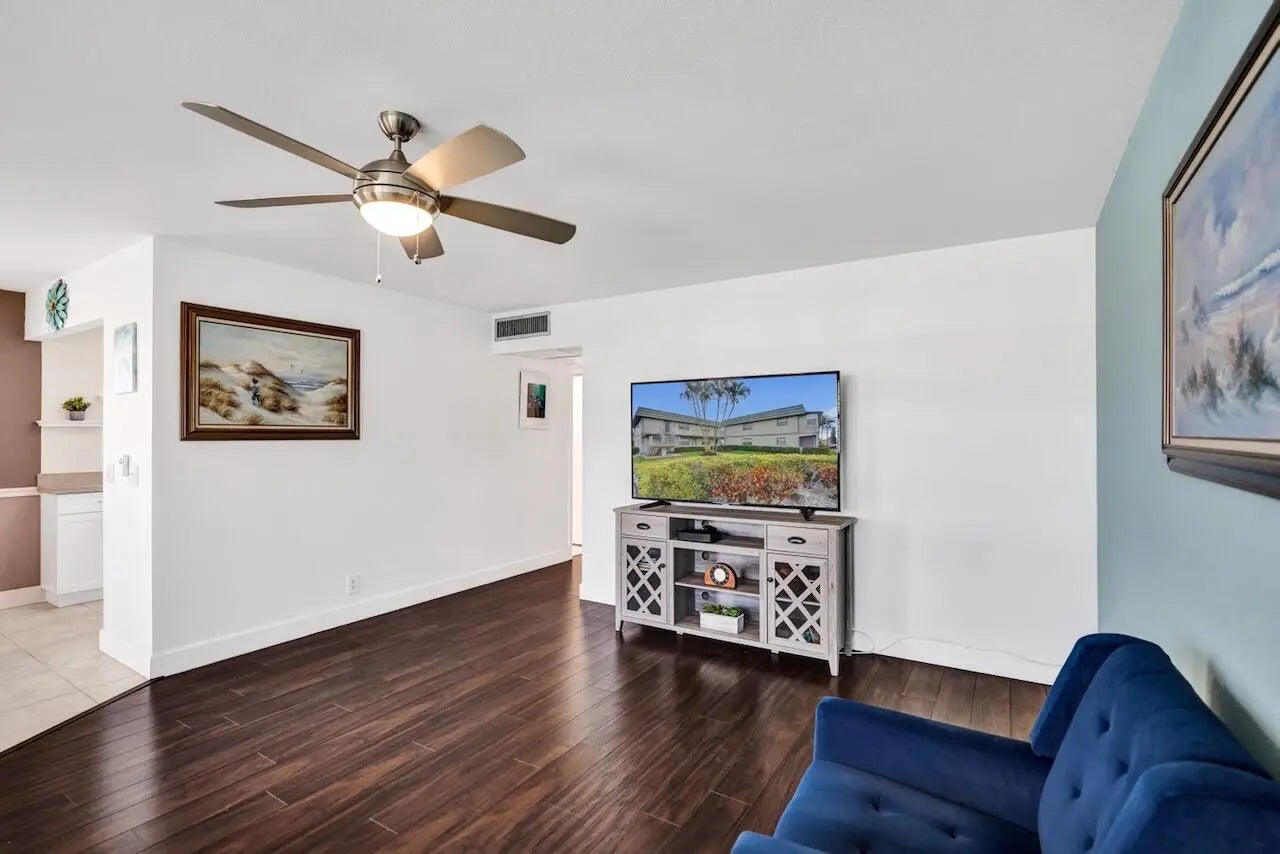 Welcome to this bright and well-maintained 2-bedroom, 2-bathroom second-floor end-unit condo located in the Monaco K subdivision of Kings Point in Delray Beach. This inviting unit features laminate wood flooring throughout, an updated kitchen with shaker-style cabinets, and nicely remodeled bathrooms. Additional improvements include a new electrical panel and new FPL disconnect, offering added peace of mind. The roof was replaced in 2025.Monthly maintenance is $816 and includes cable. A one-time $2,000 capital contribution is due at application submission. Rentals are permitted after 2 years of ownership. Pets are not permitted.The Monaco Clubhouse is just a short walk away! Residents of Kings Point enjoy an active 55+ lifestyle with exceptional amenities including three clubhouse