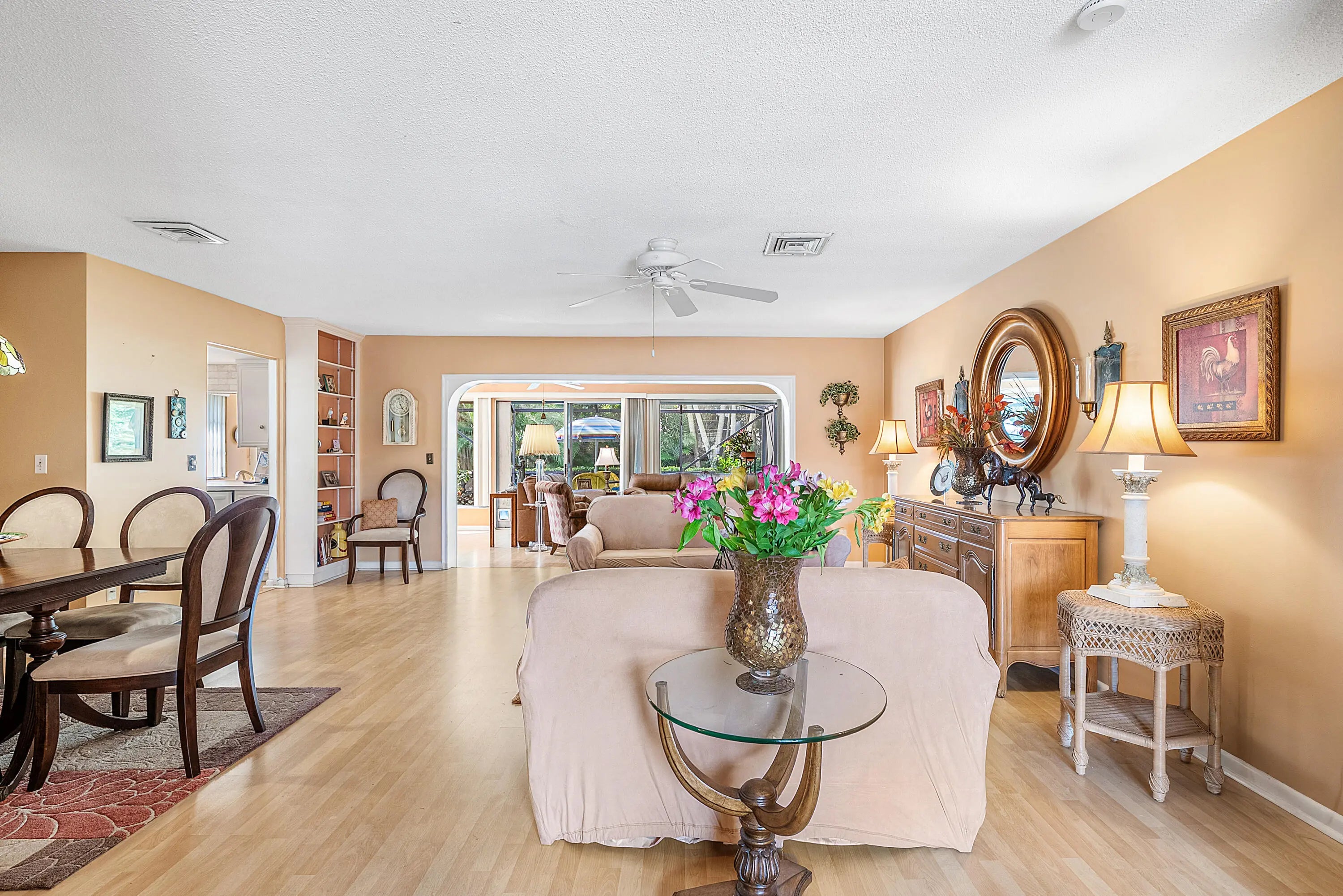 Unlock the potential of this well-located villa set on an oversized, lushly landscaped lot offering both space and privacy. This property presents a fantastic opportunity to update and create your own personalized retreat.The home features a bright, light-filled layout with a separate living room and inviting morning room that welcomes abundant natural light and open views. A screened patio with tile flooring extends the living space outdoors--perfect for relaxing and enjoying the Florida lifestyle.